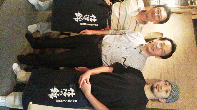 今回の、前掛けじゃんけんで、貴重な信濃錦前掛けをゲットした、K様とみかわ様の店長様と宮島社長のとっても微笑ましい、3ショットです。