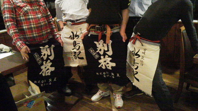 今回は、蔵元様のご厚意で、なあんと! 4枚もの前掛けをいただきました