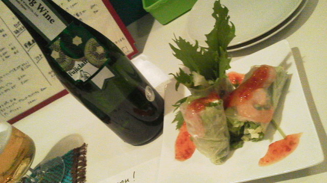 落ち着いた明るい店内にて、和やかにスパークリングワインなんぞをいただきながら、オリジナルの生春巻きを食しました。