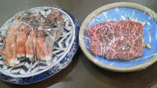 頂き物ついでに、シマ海老の刺身と常陸牛のサーロインも、ドカン!と