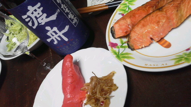 たらこに鮭に松前漬けといった、酒の肴の御三家トリオです