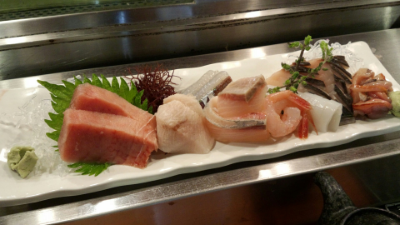 刺身の盛り合わせに始まり、お任せ四品をいただき、握りすしをいただきました。