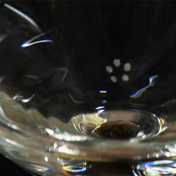 発泡ポイントとは、グラスの底に刻印された小さなポイントのこと。(下部の写真参照)