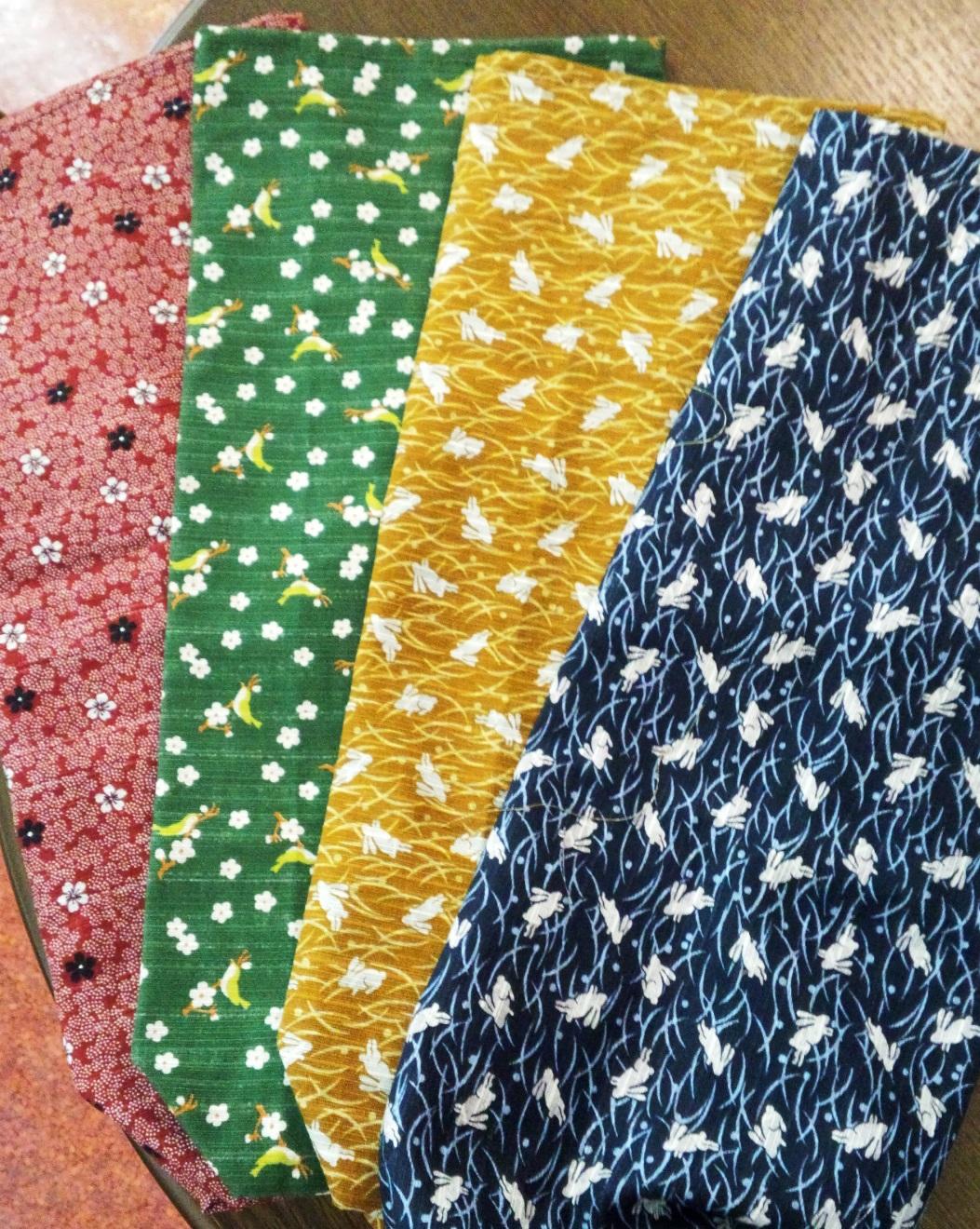 生地のデザインは、レトロ調の和柄の四色色違いにしました。