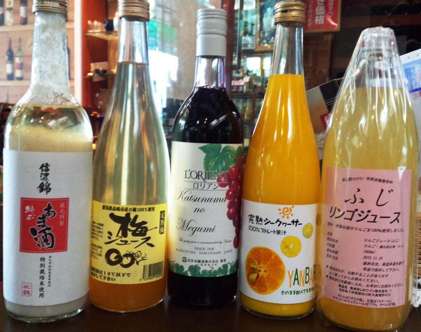 ほかにも、竹下さん家のリンゴジュース、無農薬米の純正あま酒
