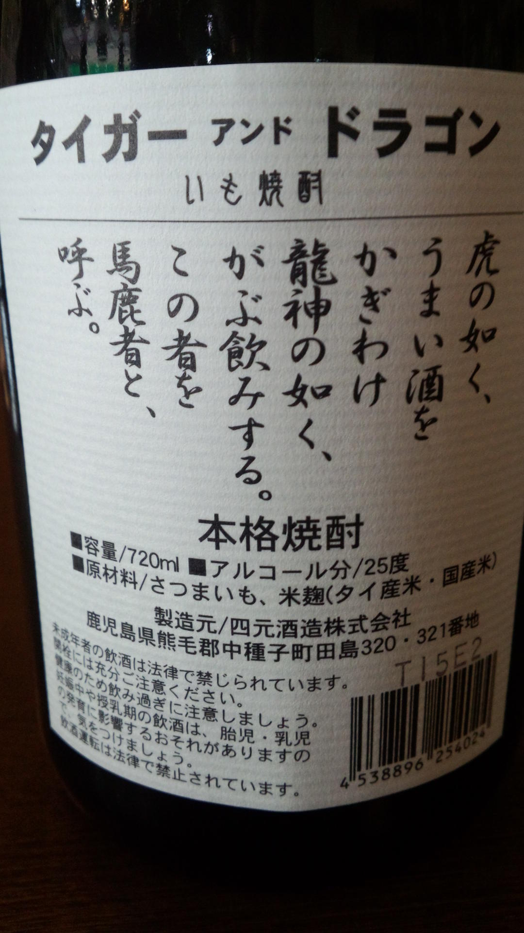 甲類焼酎には裏ラベルに甲類と記載されています。