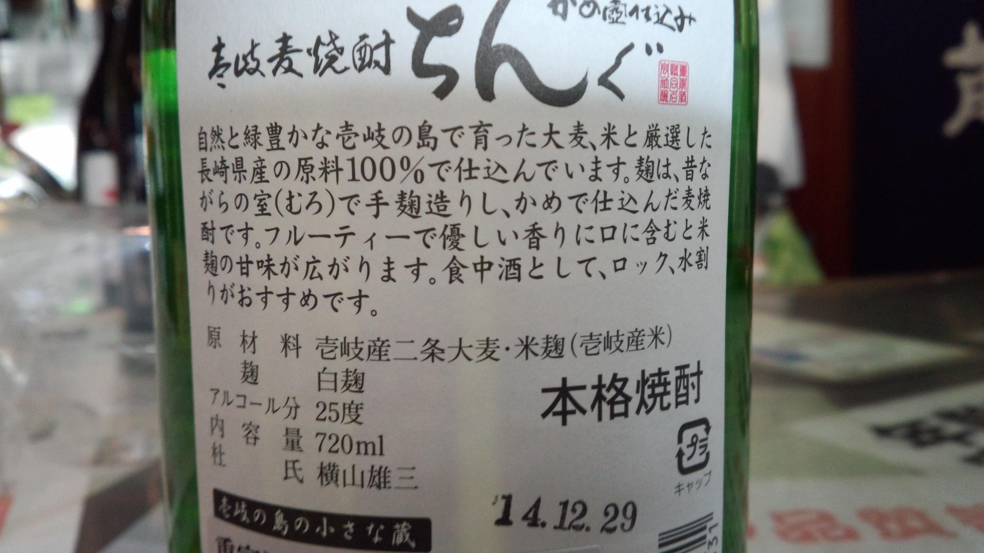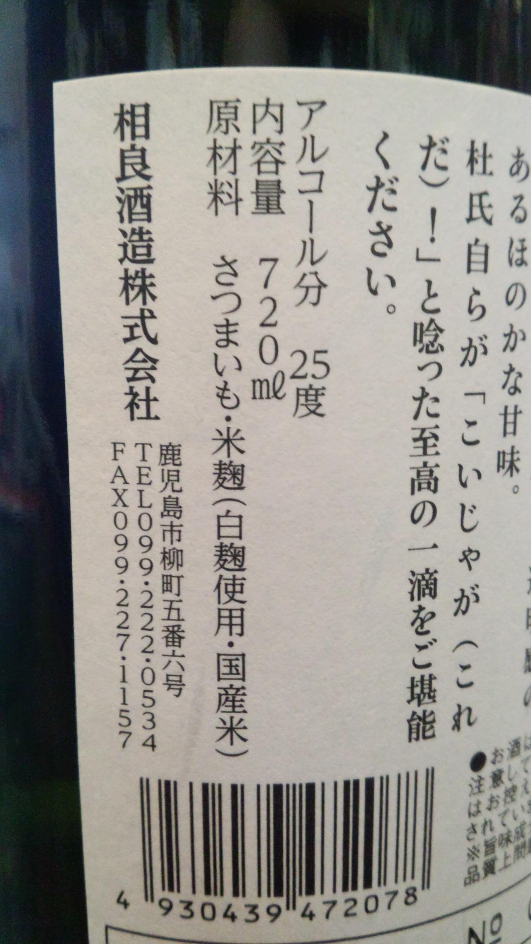 ラベルを見て頂ければ分かりますが、芋焼酎の場合は、