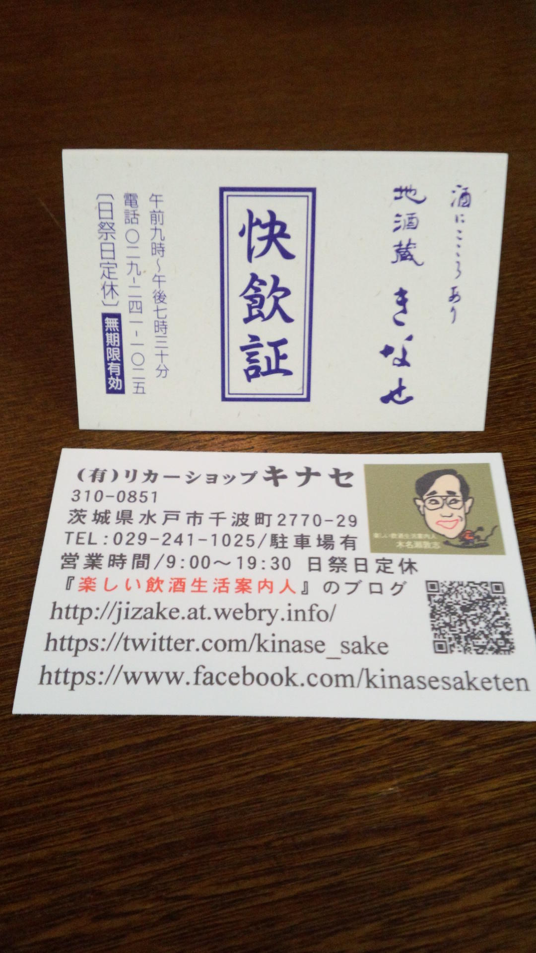 『快飲証』と一緒にお渡しする、当店のショップカードも、