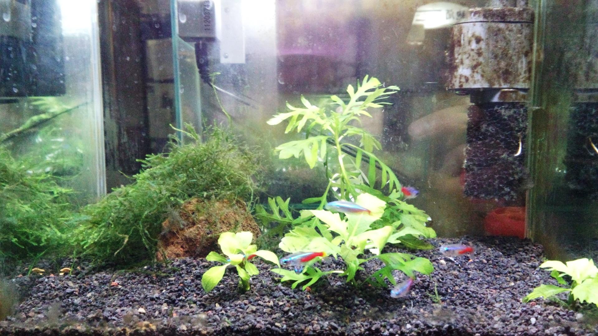 今回は、ネオンテトラのいる水槽と店内のメダカの水槽を中心に行ったんです!