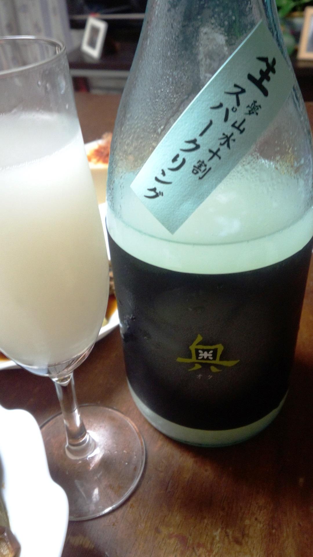 今宵、頂いたのは、『奥・スパークリング』 瓶内二次発酵の活性にごり酒です。