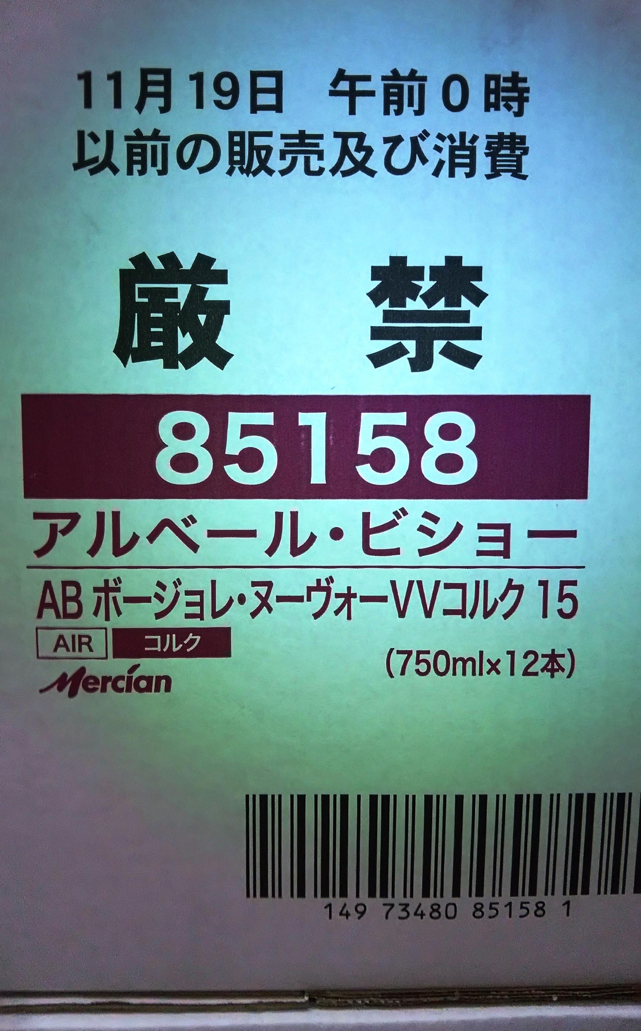 本来であれば解禁日以降に入荷してくるのですが、皆さんに解禁日と同時に飲んでいただけるようにとの特例措置で酒屋や飲食店には解禁日前に届けられます。私の所にも今日から今年のボージョレ・ヌーヴォが届き始めています。もちろん、届いたからと言って箱を開けたり、店頭に並べたりしてはいけません。ましてや、販売したり、飲もうものなら言語道断です。ワインを扱う酒屋の風上にも置けませんね!