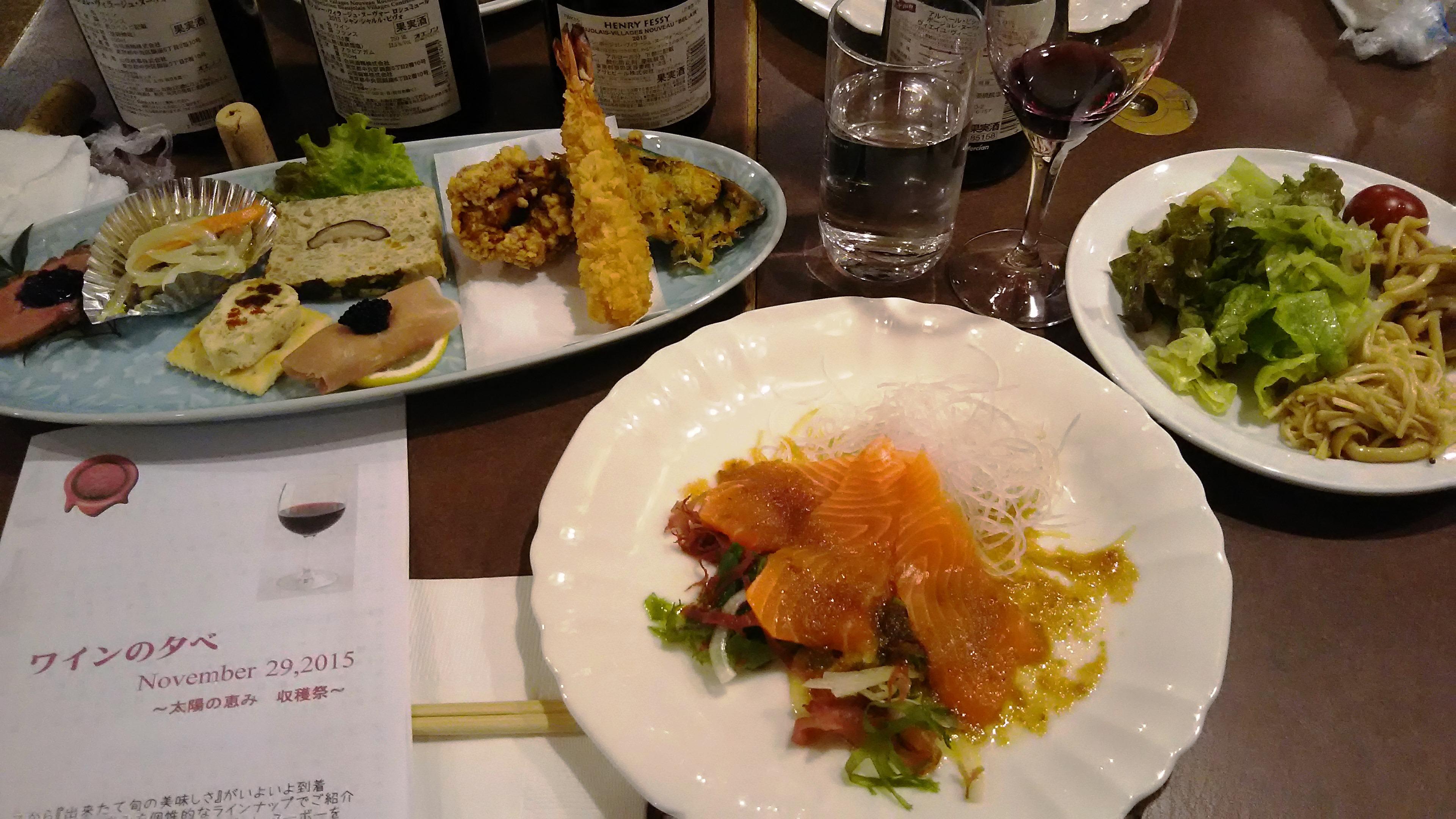 会場を提供して頂いた『銀座スエヒロ水戸店』さんの料理は、ボリュームがあって美味しいことから、毎年評判が良くそれを目当てに参加される方もいるんです。今回の料理もワインに合わせた前菜の盛り合わせに始まり、茸のサラダやサーモンのマリネといった山海の恵みをふんだんに使った物でした。もちろん、柔らかいステーキもマスタードソースでサッパリと頂きました!
