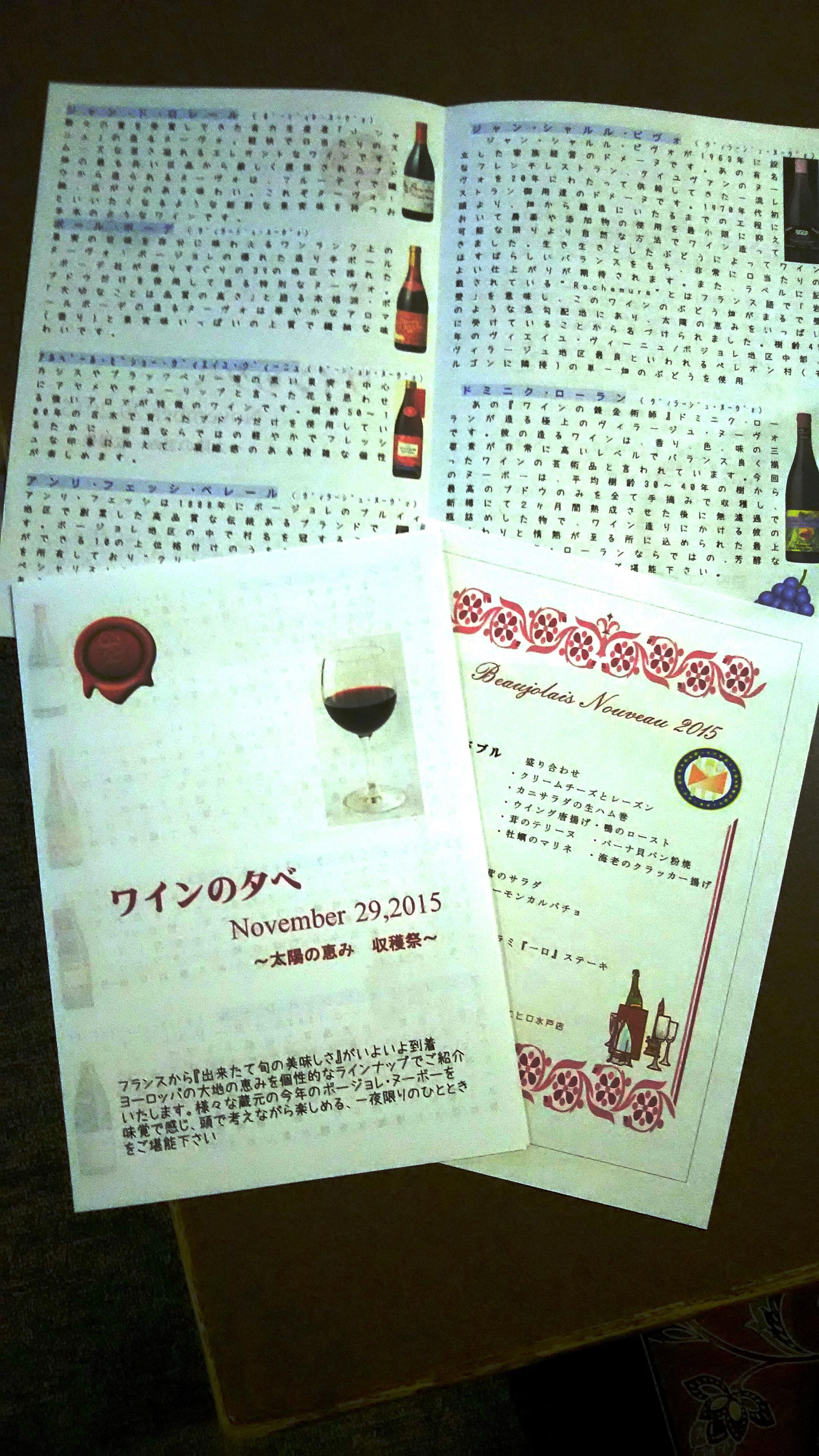 老若男女のワイン好きが集まっての『ボージョレ・ヌーヴォー・パーティー2015』を盛大に開催することが出来ました!今回味わいましたボージョレ・ヌーヴォーは6種類+1の7種類で合計30本を飲み干すと言う、数字を聞いただけでもビックリポンな酒豪さん大集合のワイン会となりました(笑)