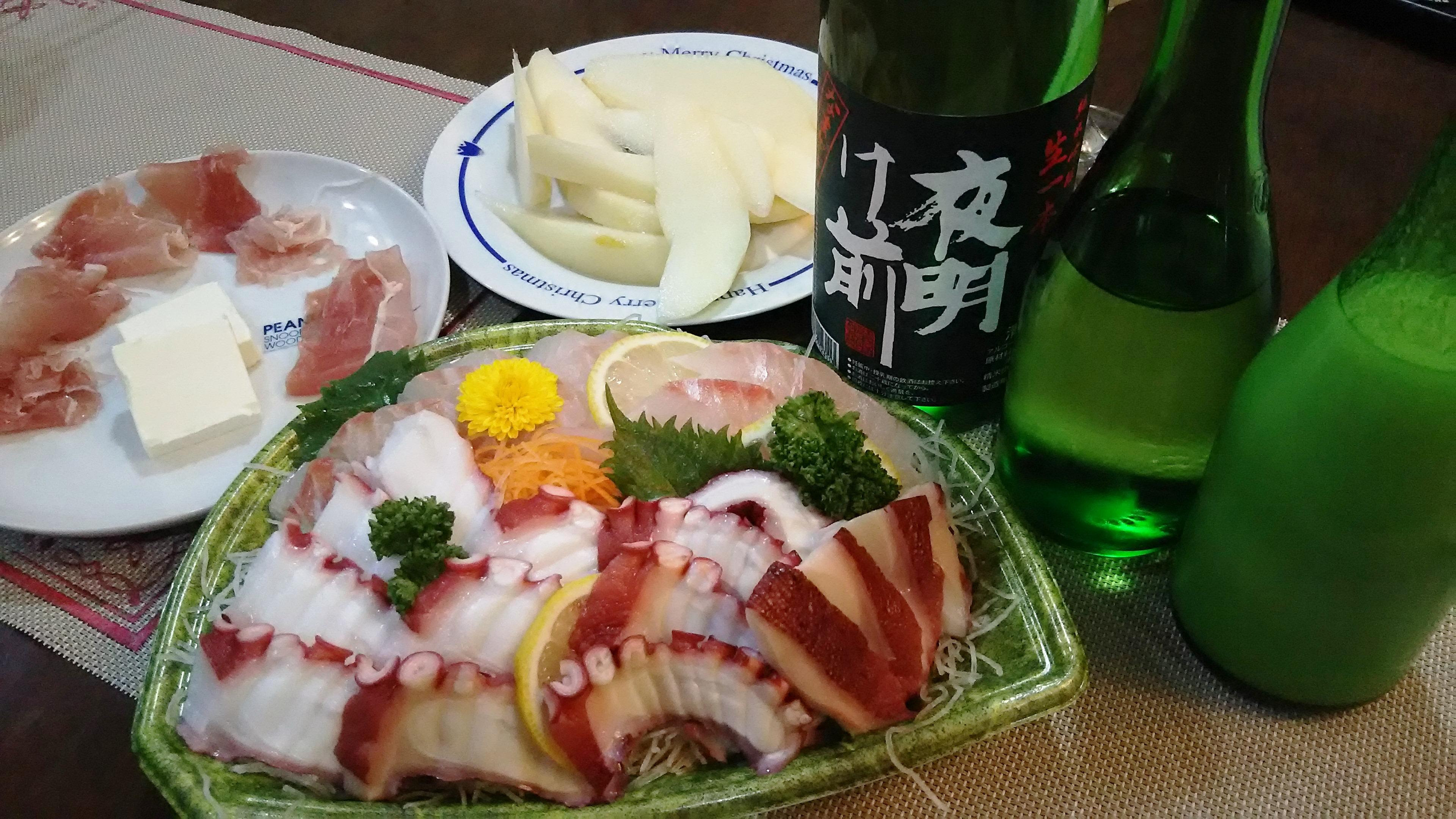 このような仕上がりの素晴らしいお酒には、どんなつまみでもあってしまうから不思議です。淡白な味わいのタコとタイのお刺身を頂きながら、酒を口の中に放り込んでやるとパラダイスな世界が広がりました!国産洋ナシのル・レクチェに生ハムとクリームチーズを合わせて、にごり酒と一緒に頂くと、これまた四味一体の高難度合わせ技の完成です!