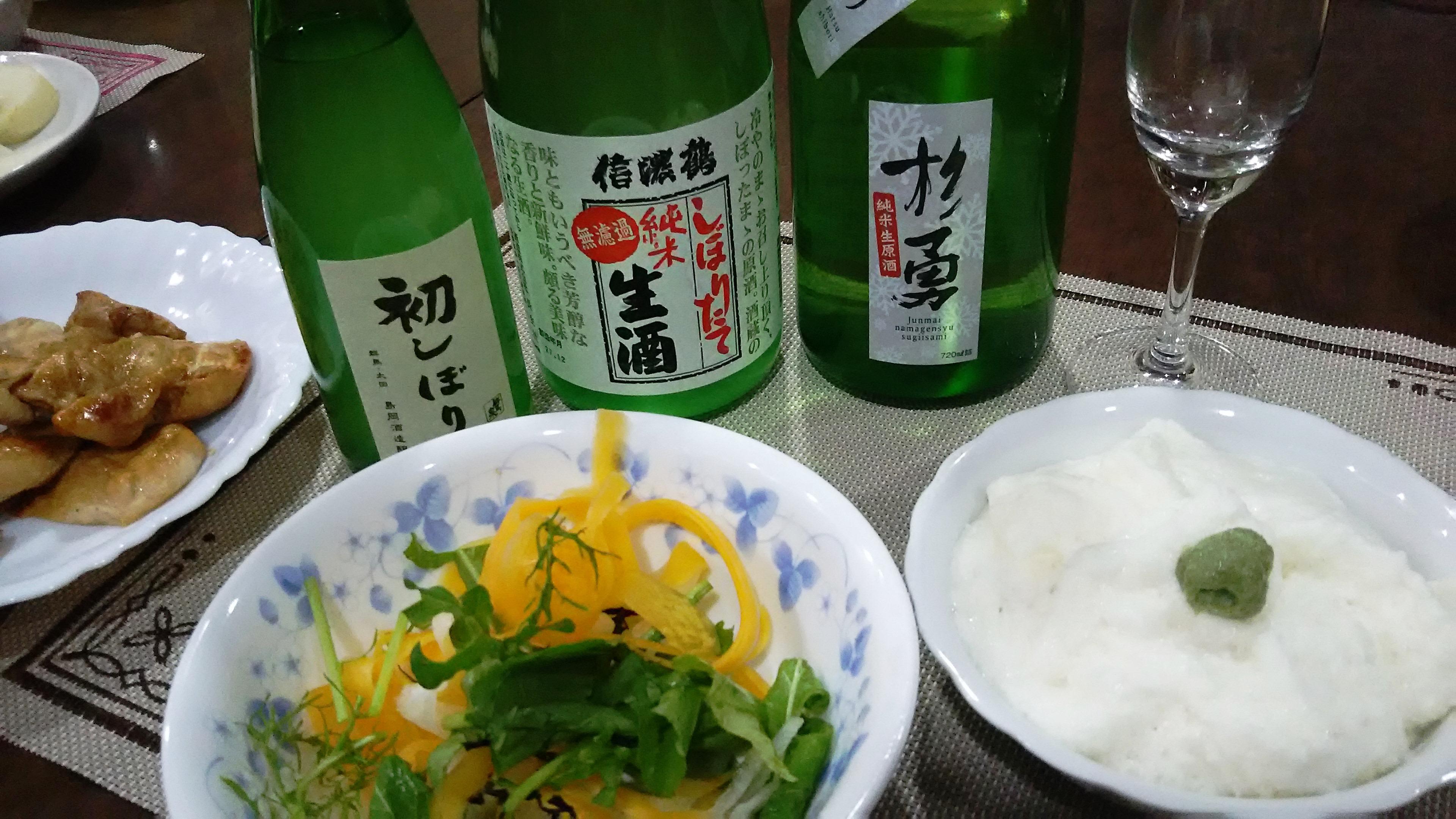 まず最初に飲んだのは、お燗酒の雄として知られている群馬県の群馬泉さんが醸す『初しぼり』です。お燗酒のイメージとは程遠い、とってもフルーティで口の中にマスカットの香りが溢れる様な味わいです。妻が日本酒にハマるきっかえとなったお酒なんですよ!蔵元のある太田市名産の山芋と一緒に頂きました。この山芋、とっても濃厚で、お箸で持ち上げることができるんですよ。ところで、どうして山芋は触ると手が痒くなるんでしょうかね?食べても口は痒くないのに・・・不思議です。