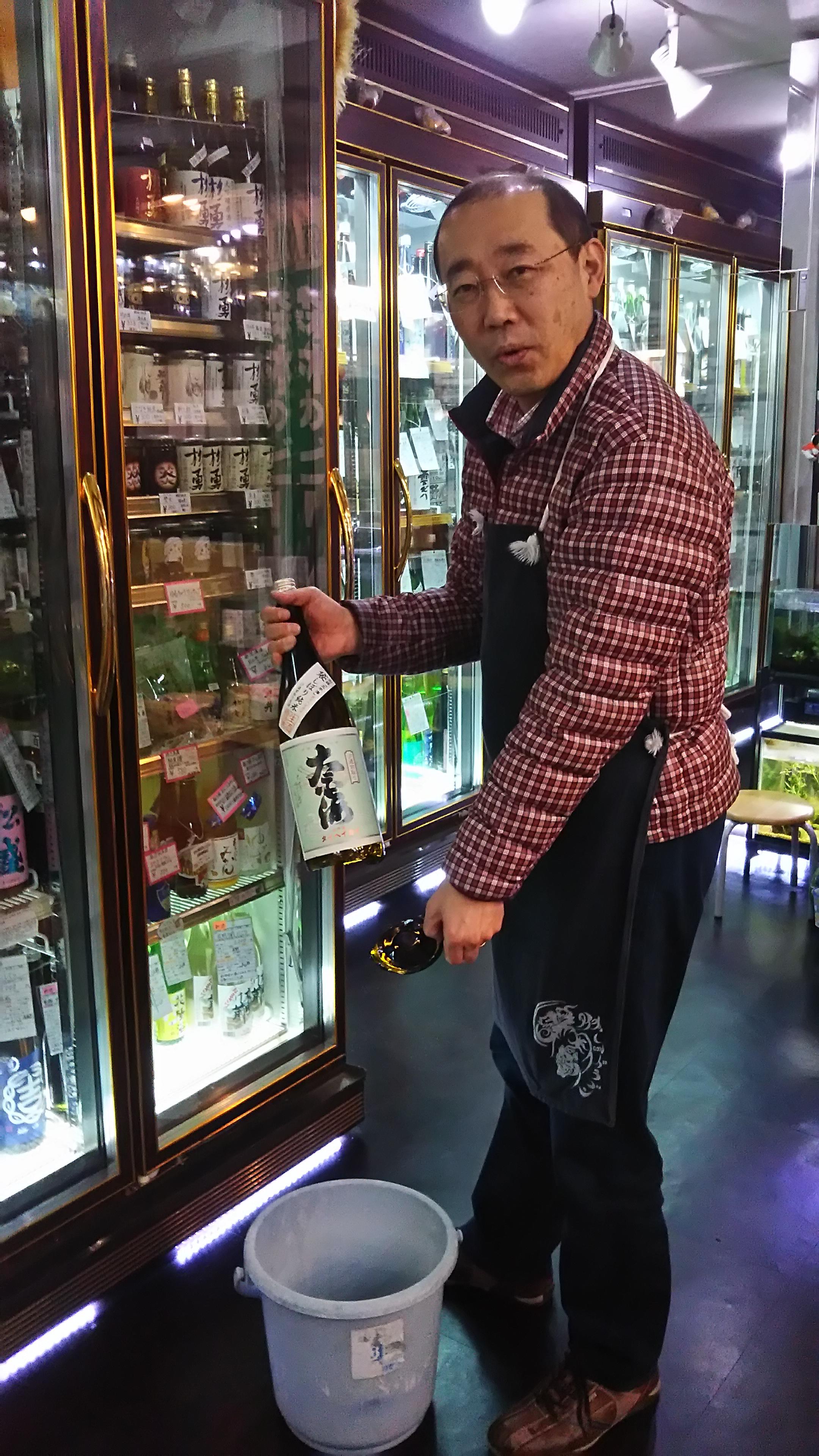 その事件は、数人のお客様が店内で試飲や買い物をしていた時に、私が売れて減っていた日本酒を補充しようとして、日本酒冷蔵庫の内の日本酒を入れ換えようとしていた時に突然起こったんです!日本酒の瓶が破損した時の音よりも、私の叫び声に、皆さんの視線が一斉に集まりました。