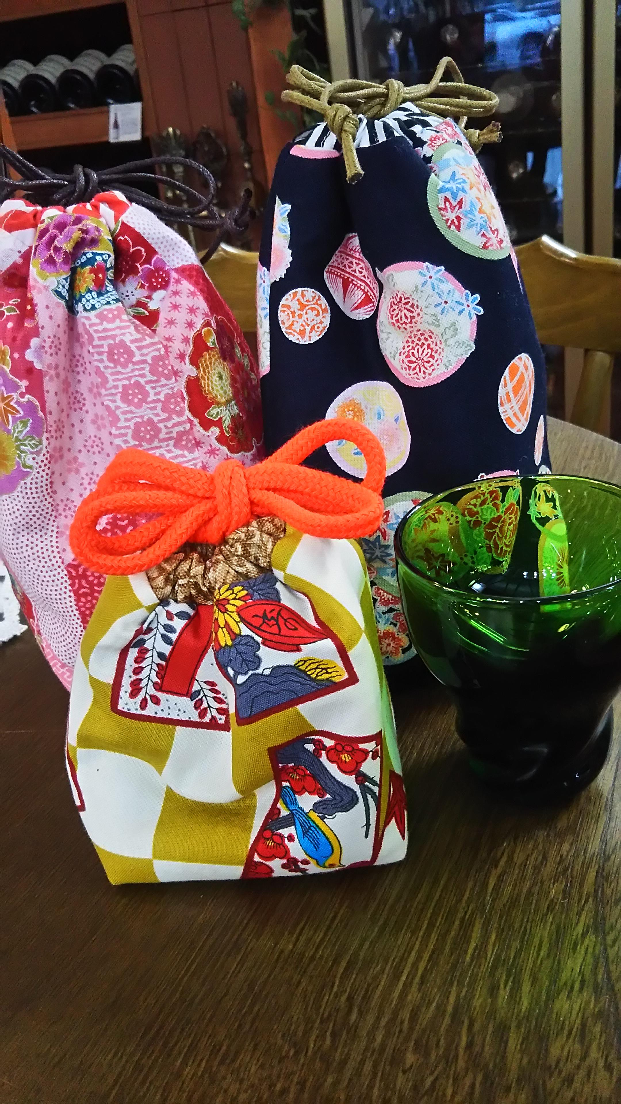 そして、さらに気分を盛り上げてくれるお洒落グッズをご紹介いたします!それが『ぐい飲み袋』なんです。せっかくお気に入りのぐいのみを持って行っても、ビニール袋や紙袋から取り出したりしたのでは、なんだか、みすぼらしく思えてしまいますし、ぐい飲みもちょっと可哀そうです。