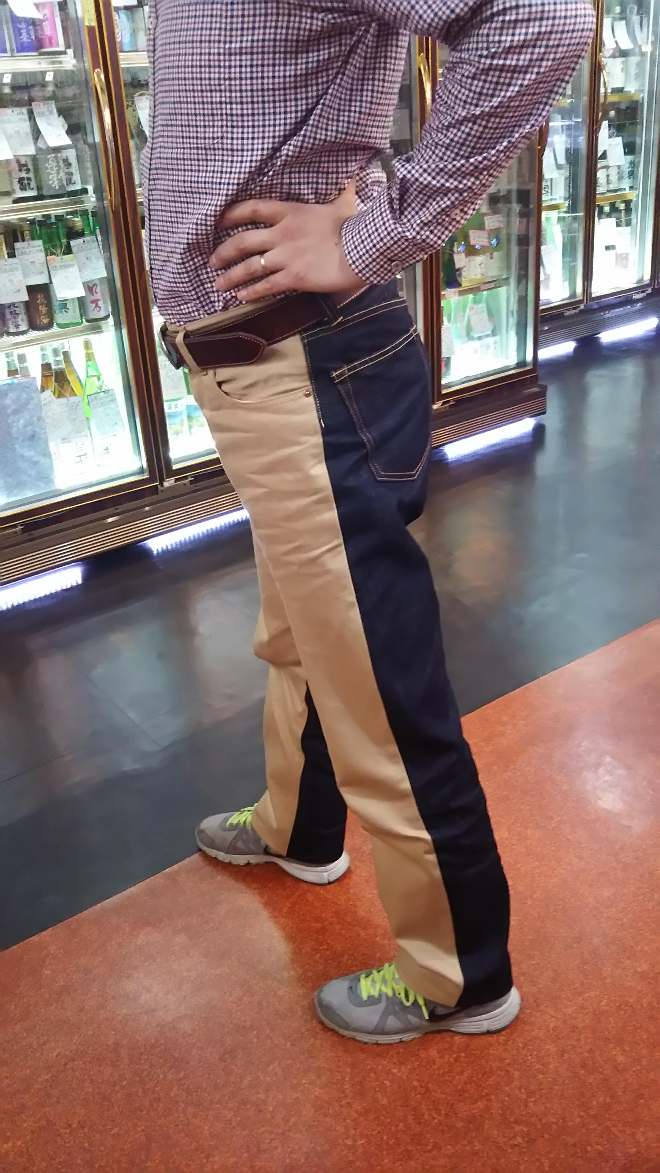 話は変わりますが、先日、久しぶりにジーンズを買いました。せっかくなので、ブルーを買おうと思ったのですが、最近はベージュ色系の物を履いているので、迷った結果、前面がベージュで後ろ面がブルーの二色切り替えの物を選びました!これが結構画期的で、自分で見るときは日頃履きなれたベージュ色が目に入るので落ち着き、後姿は一般的なジーンズ姿に見えるんですよ。横からの姿はちょっと微妙ですが、お洒落かと・・・(笑)