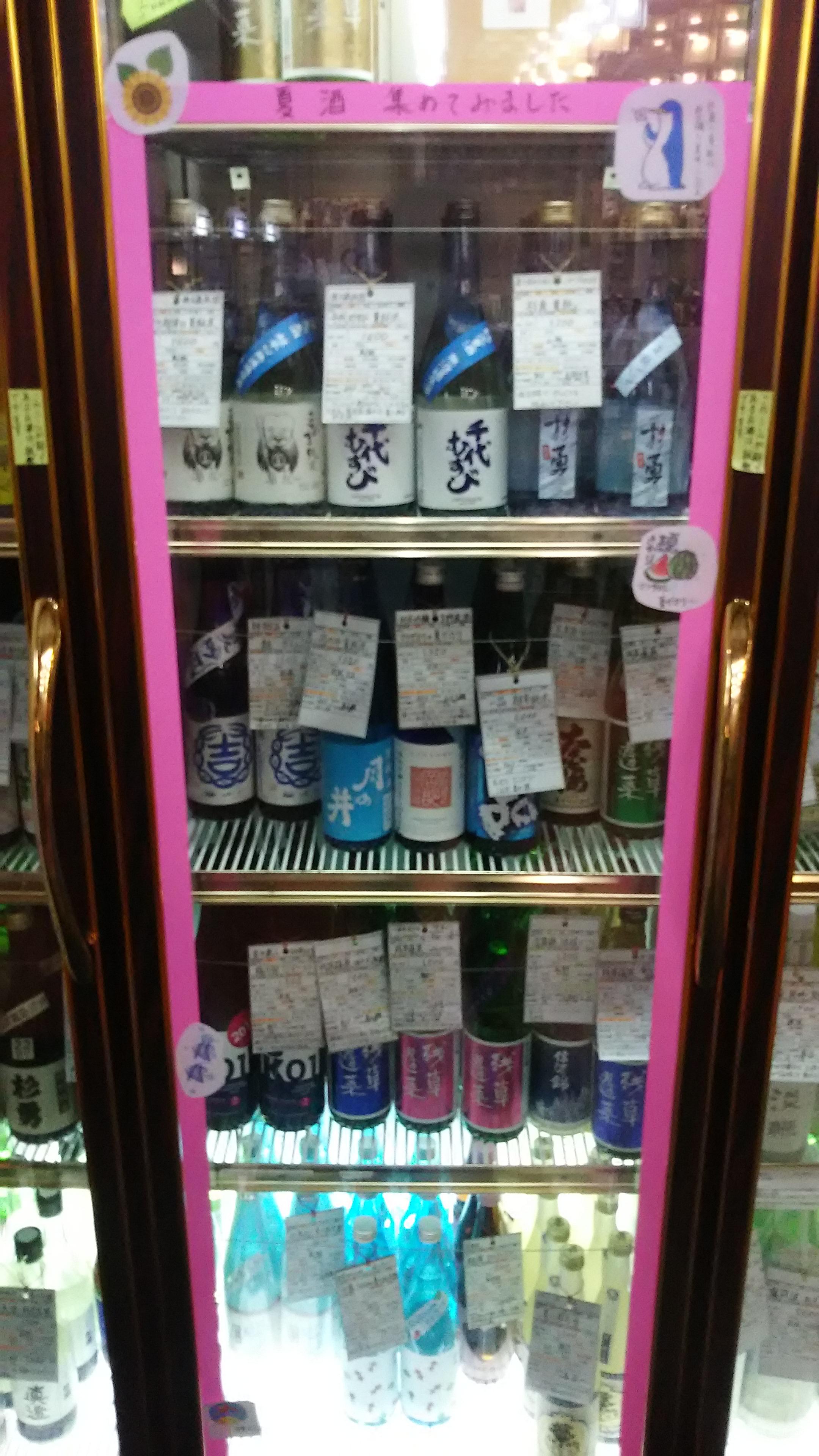 せっかく出来た『夏酒コーナー』でも、気づいてもらえなかったら、作った意味がありませんので、控えめですが、飾りつけをしてみました!『お!冷蔵庫の中が変わったね!』と、言って下さる方が、果たして何人いるのでしょうか・・・。ちょっと不安です(笑)