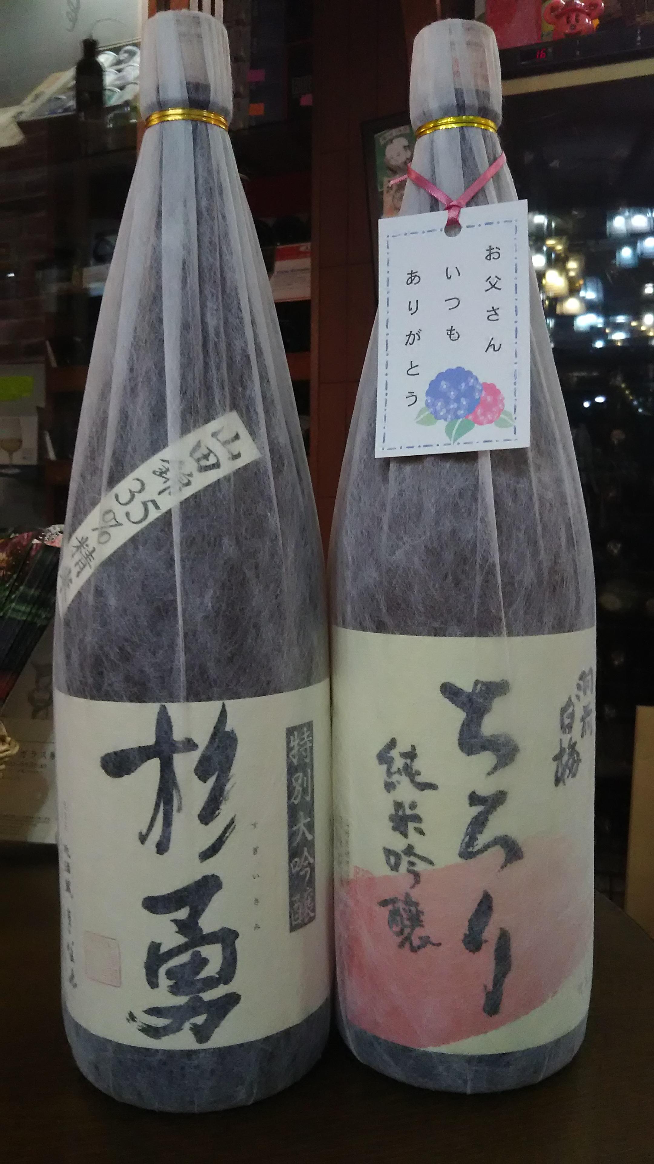 差し上げる方は、一年を通してお燗酒しか飲まないそうで、夏の暑いときでも、少し温めてお酒を飲んでいらっしゃるんだそうです。今回は、父の日のプレゼントなので少し高価な日本酒を差し上げたいという事で御来店されました。ご予算は一升瓶で1万円までとの事でしたので、本当でしたら鑑評会の出品酒をお勧めしたいところでしたが、今回は温めても美味しく飲めるお酒をご希望でしたので、次のようなご提案をさせて頂きました。