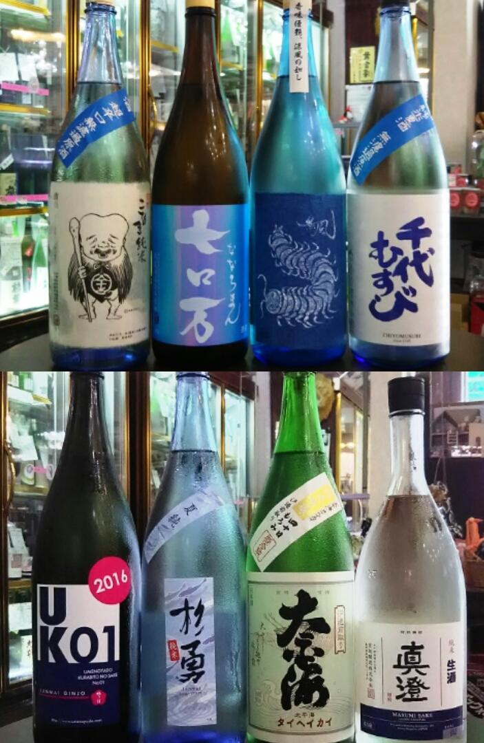 そこで今日は、今回新たに揃った夏酒第二弾の八銘柄を簡単にご紹介していきたいと思います。普段は、お酒の案内をすることはありませんが、短期間で一気に商品が出そろってしまったので、飲み逃しを防ぐ意味でも、各蔵元様自慢の夏酒をご紹介させて頂きます。