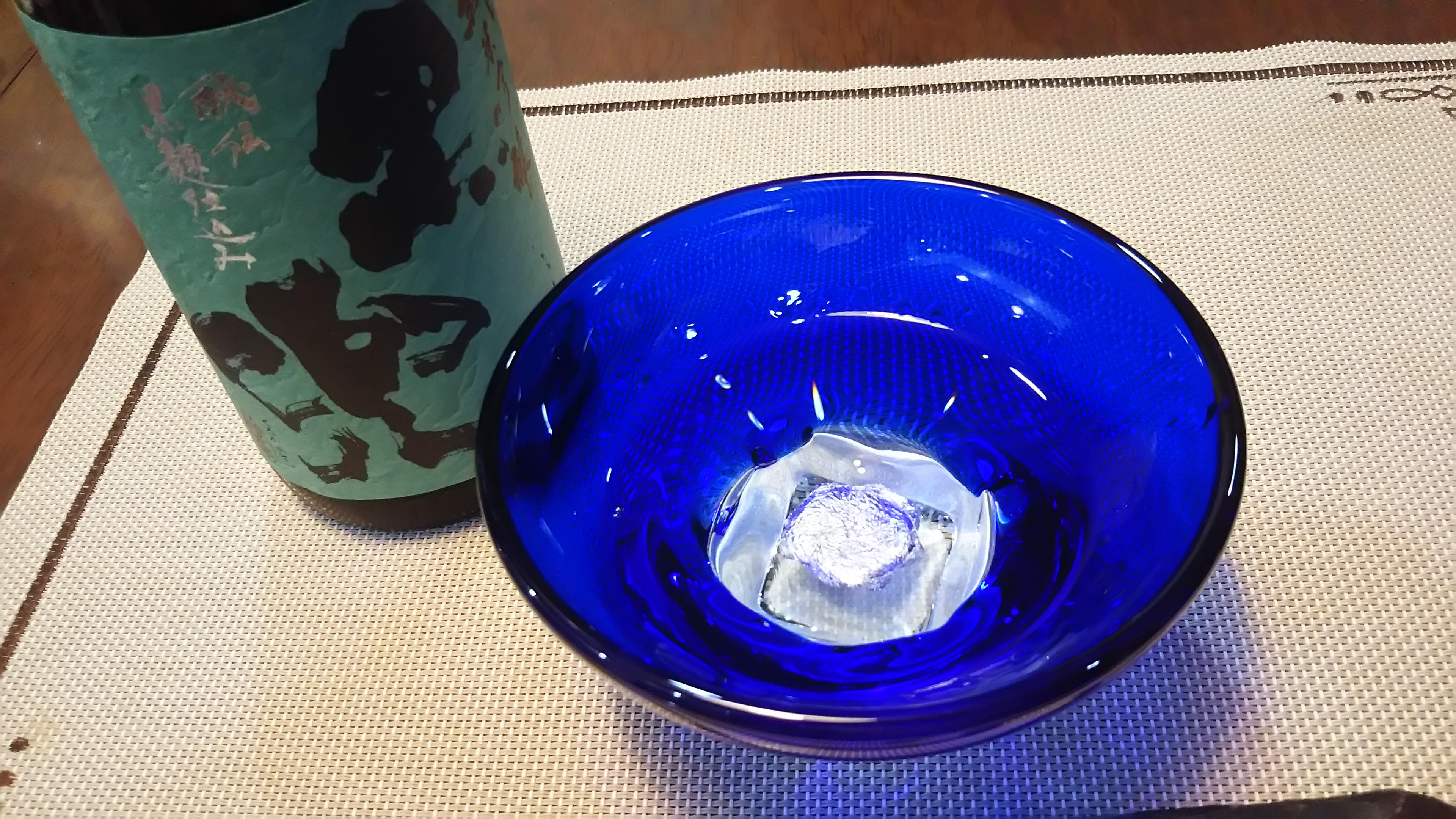 紺碧のグラスに注がれた日本酒が、光り輝きながら揺れ動く様を見ているだけで、幸せな気分になります!素敵な器とお酒があると、それだけで心が豊かになって、全てが美味しく感じられる気がします。