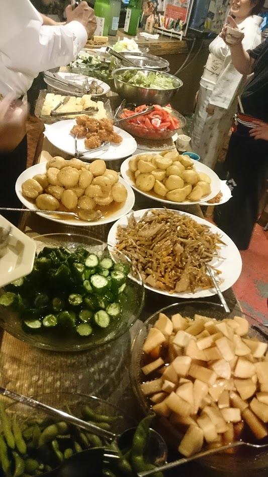 会場内には、お酒と料理を食べながらゆっくりとライブ演奏が楽しめる様に、人数分の椅子とテーブルが用意されており、各人がカウンターに並べられたお料理と日本酒を自由に取りに行く、ビュフェスタイルになっていました。料理は、季節の野菜を使ったペーパームーンさん手造りの品々で、日本酒に合うように考えられています。最後には、手打ちそばも振る舞われ、皆さん大いに喜んでいました。