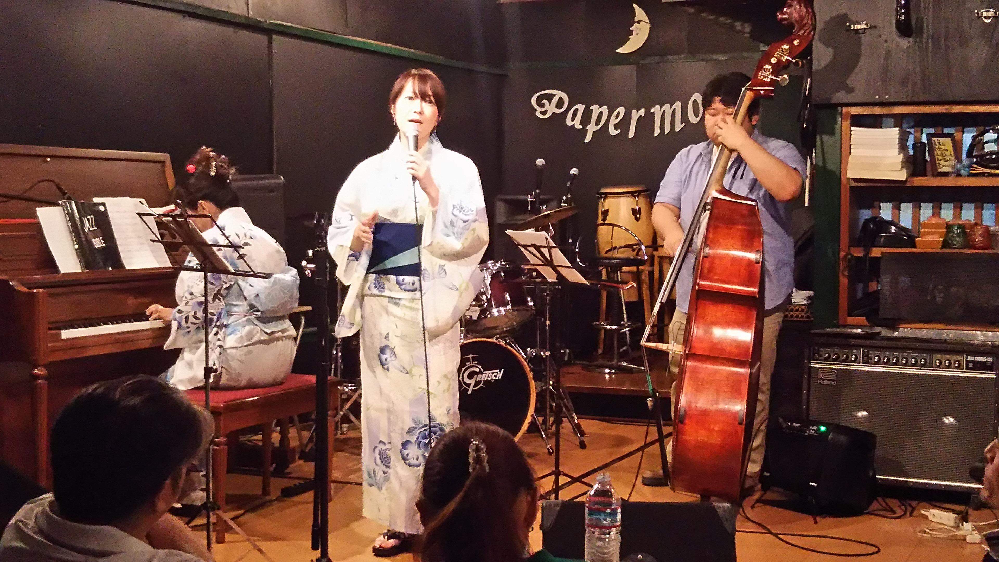 ライヴは、ウッドベースの菱沼さんとピアノのひとみさんアンサンブル演奏から始まり、会場が心地よい音楽に包まれた頃に、みどりさんの素敵な歌が始まったのです。そんな素敵な時間もあっという間に過ぎて行き、何度もアンコールがかかったのは言うまでもありません・・・。みどりさん、ひとみさん、菱沼さん、本当にありがとうございました!