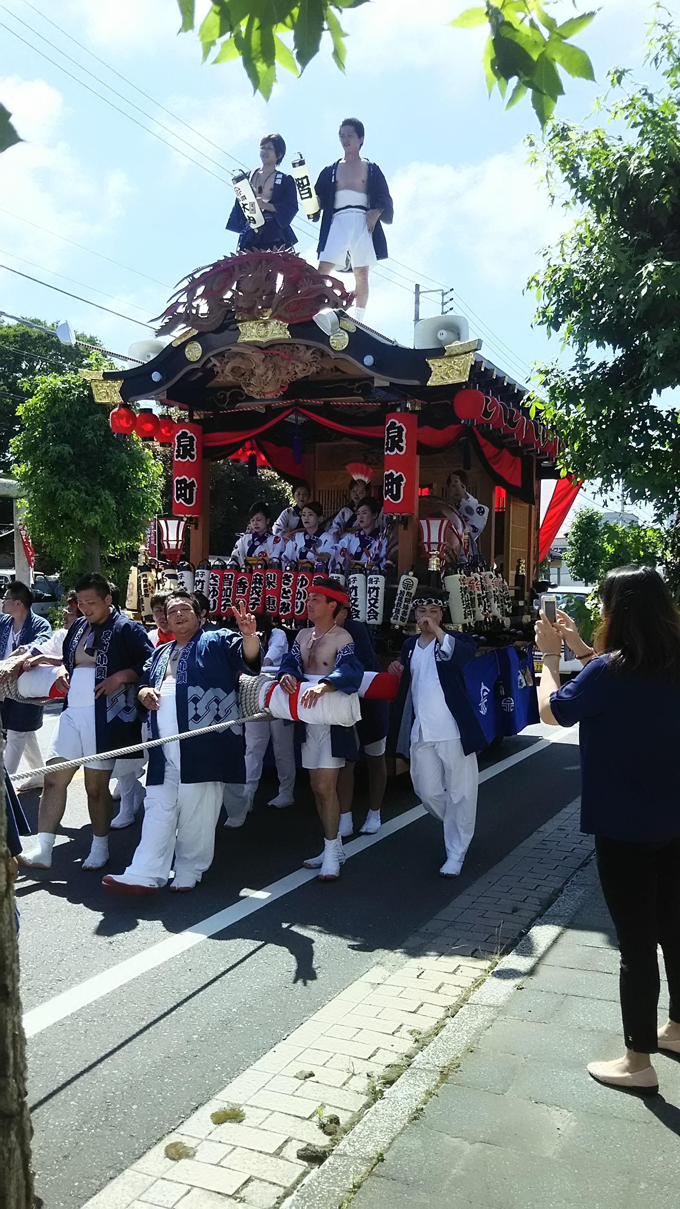 ギャラリー空さんのある場所は、那珂湊駅からお魚市場へ向かうメインストリートに面していて、この季節は、海水浴などのお客様でとても混雑している所なんです。しかも、今日は『那珂湊フェスタ』というお祭りも重なって、店の前を立派な山車が何台も通り過ぎて行きました。器を探しに来たのに、お祭りの山車を目の前で見ることができて、とても得した気分になりました!