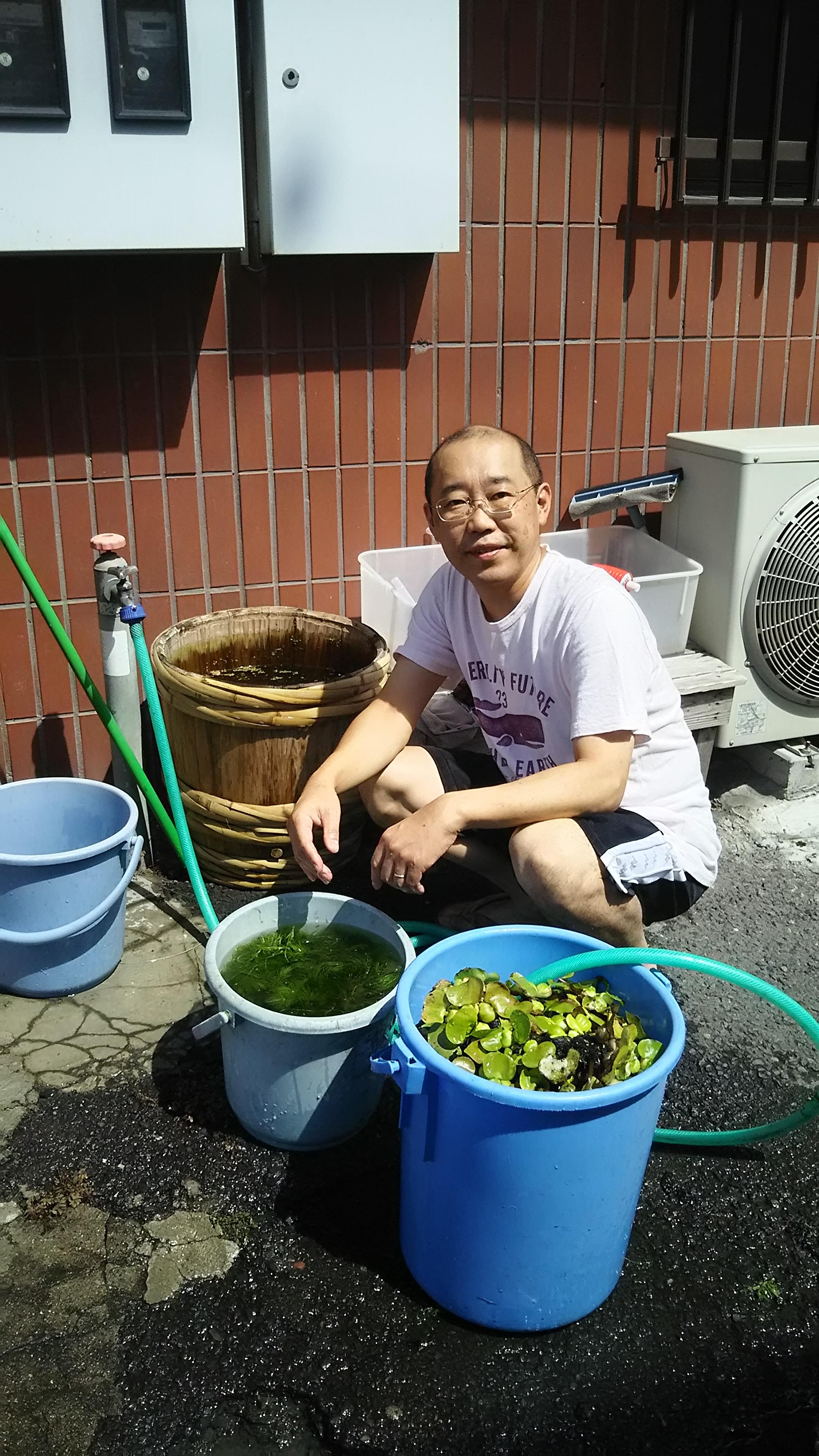 実は、今回水漏れを起こした樽は老朽化が進んでいて、樽を締めつけている竹のタガが傷んでいたので、来週の連休を使って交換する予定だったんです。メダカを入れる為には、樽のあく抜きをしないといけないので、新しい樽の準備もしていた矢先の今回の出来事でした。と、言う訳で、今日はとりあえず応急処置をしただけですので、明日の休日は、朝からメダカのきちんとした引っ越しをしないといけなくなってしまいました。