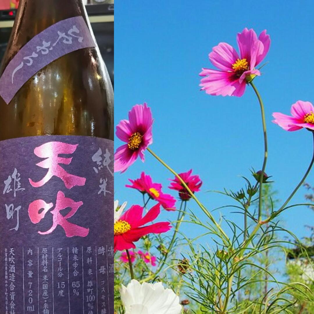 その『コスモスの花』から抽出した酵母で造られた日本酒があるのをご存じでしょうか!花酵母を使ったお酒を数多く世に排出し、沢山の方々から高い評価を得ている、佐賀県の天吹酒造さんが造る秋のひやおろしが『天吹・純米・雄町・コスモス酵母』です。コスモスの花のように柔らかで穏やかな香りを持ち、しっかりとした旨味を持ち合わせているので、どんな料理とも良く合い、飲み飽きすることの無いお酒です。