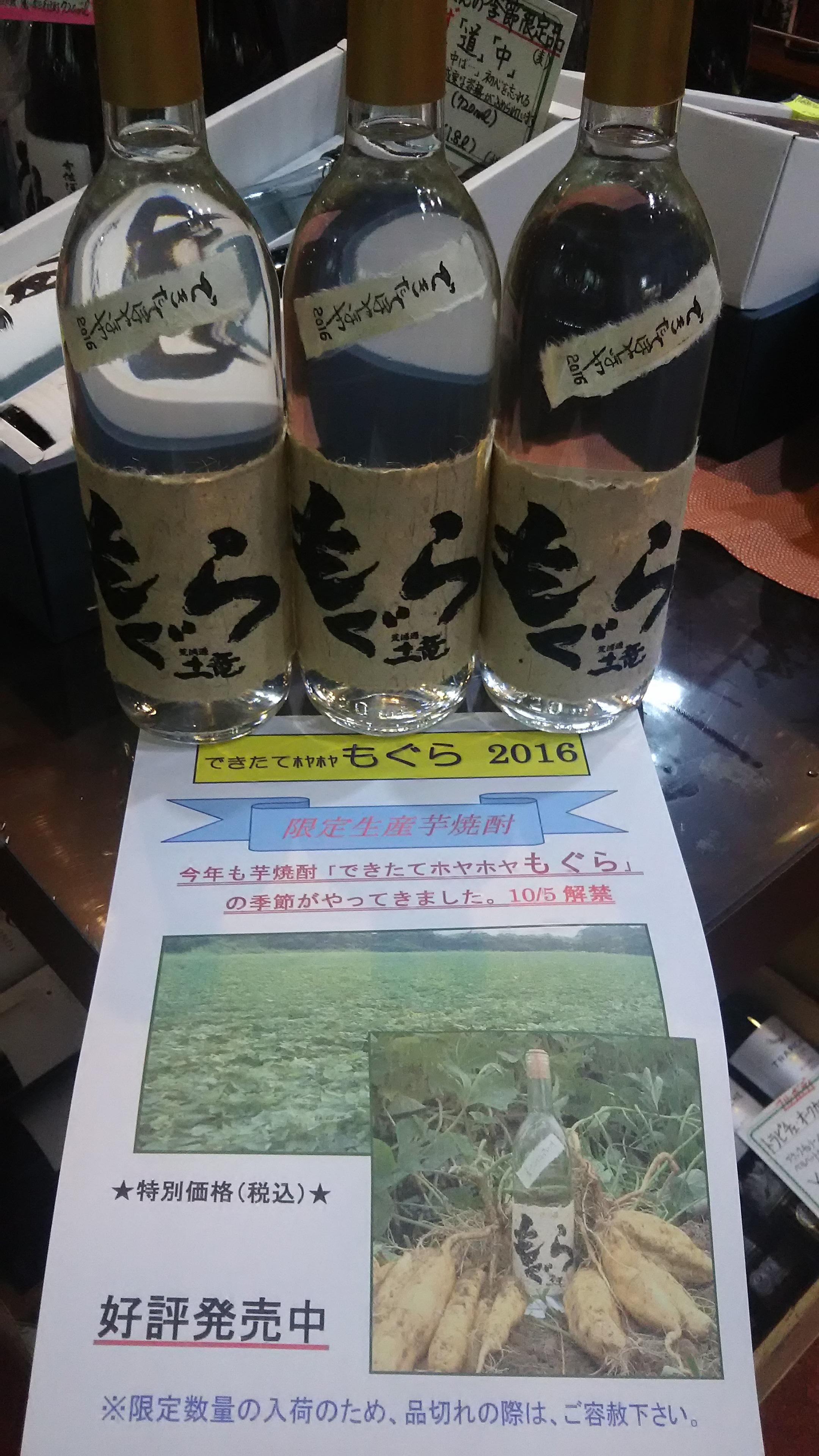 11月1日の『本格焼酎の日』を前にして、芋焼酎の本場、鹿児島県から今年収穫したサツマイモで造った芋焼酎の新酒が届きました。数ある新焼酎の中でも、当店で圧倒的な人気を誇っているのが『できたてほやほやもぐら』です。そこで、今日は芋焼酎の新酒についてお話ししたいと思います。