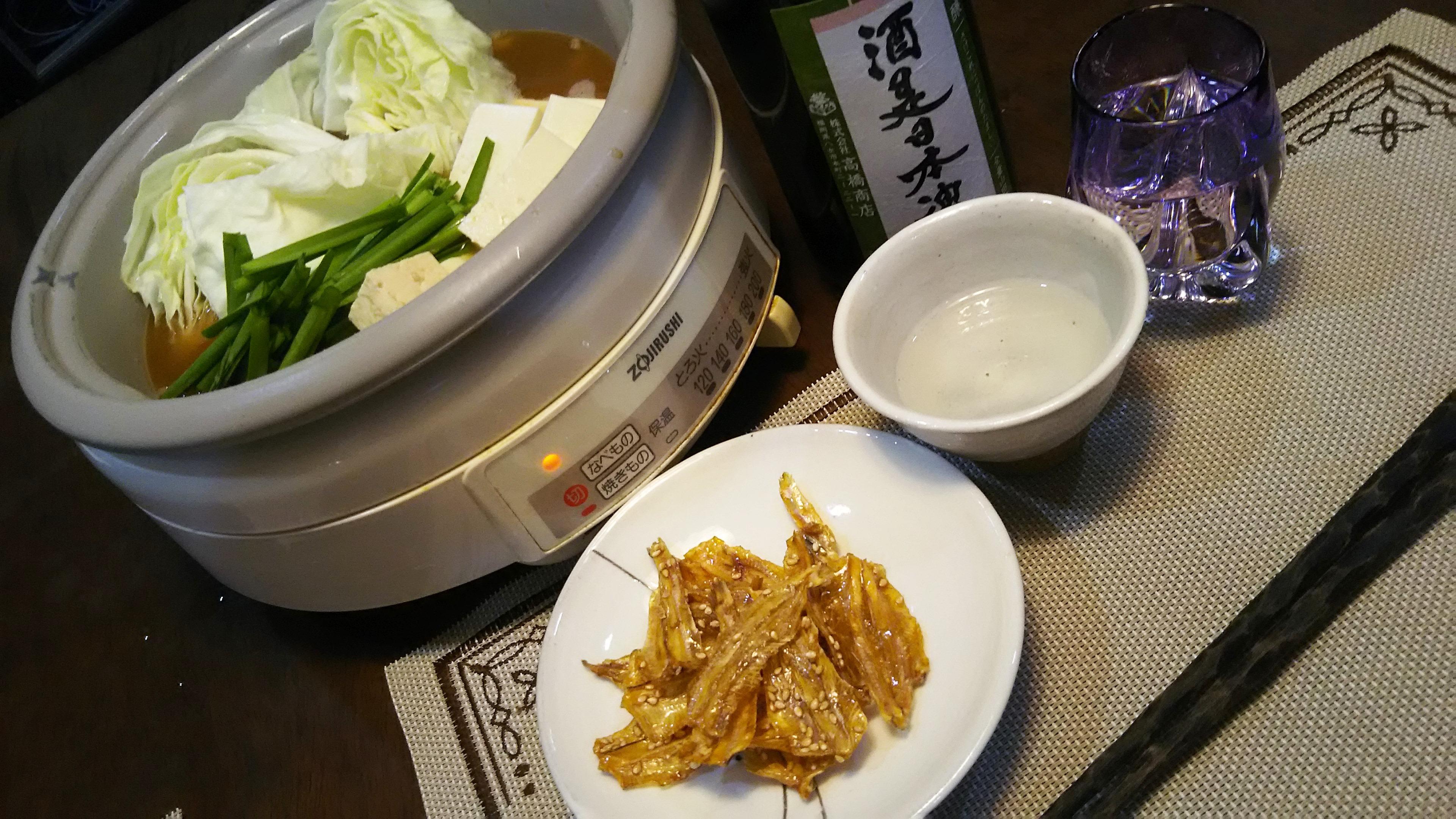 同じく、島で買ってきた『イワシの味醂干し』をつまみながら、焼酎のお湯割りを飲んでいると、島での宴会を思い出します。最後は、食材の旨味をたっぷりと含んだだし汁に、ご飯と玉子を投入し、おじやにして残さず綺麗に食べきりました。準備も後片付けも簡単な『鍋』は冬の食卓の強い味方です!