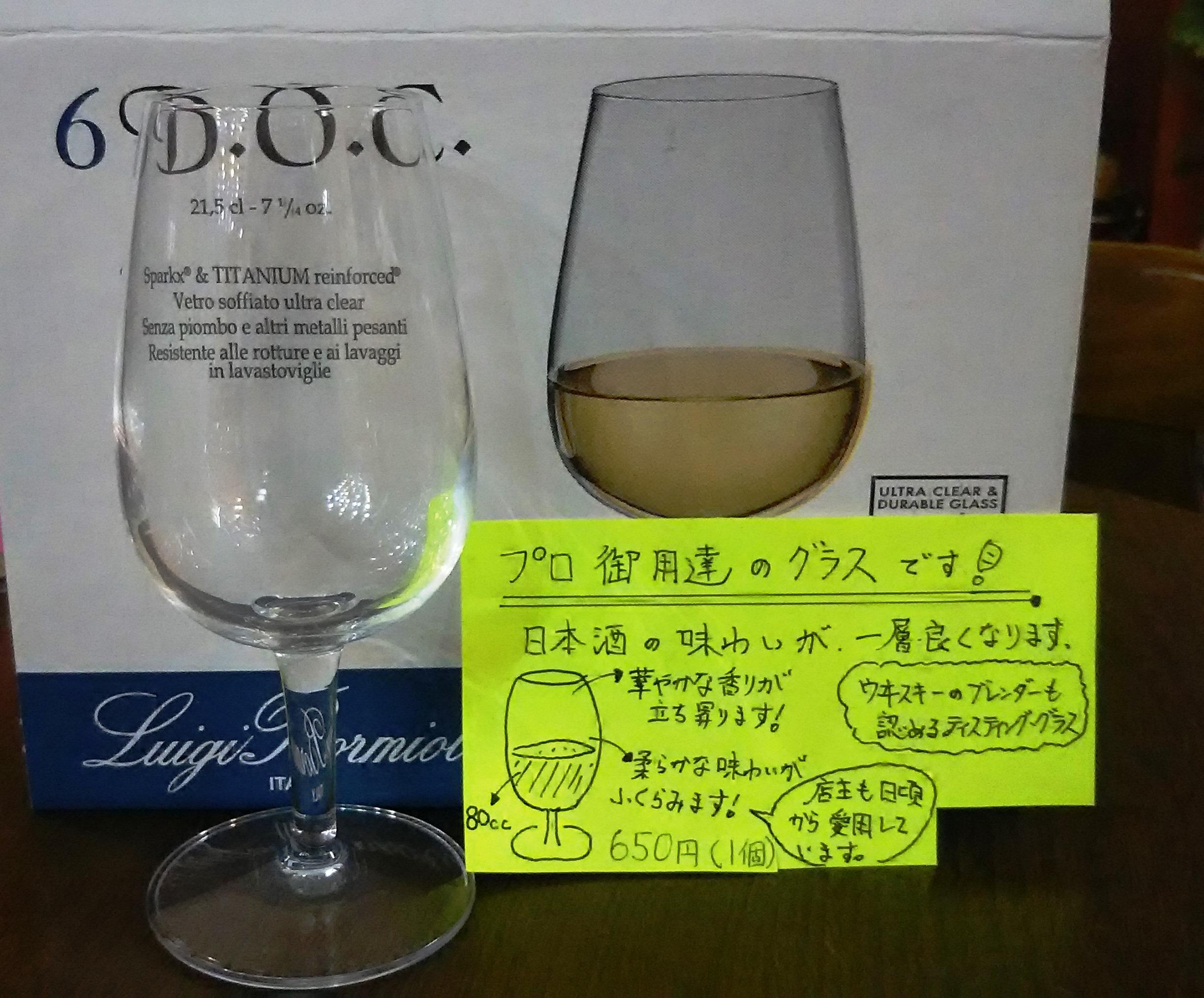 ただ、日本酒用、ワイン用、とそれぞれに対応したグラスを持つことはとても大変なので、そんな時に重宝するのが『テイスティング・グラス』なんです!実は私も、自宅で愛用しており、様々なお酒の香りや味わいを見るときには欠かせません。当店のお客様の中でも愛用者が多く、ワインや日本酒を飲むときに使っているそうです。グラスの半分より少し下ぐらいが80ccなので、飲み過ぎなくてちょうどいいんです!と言ってる方もいました(笑)