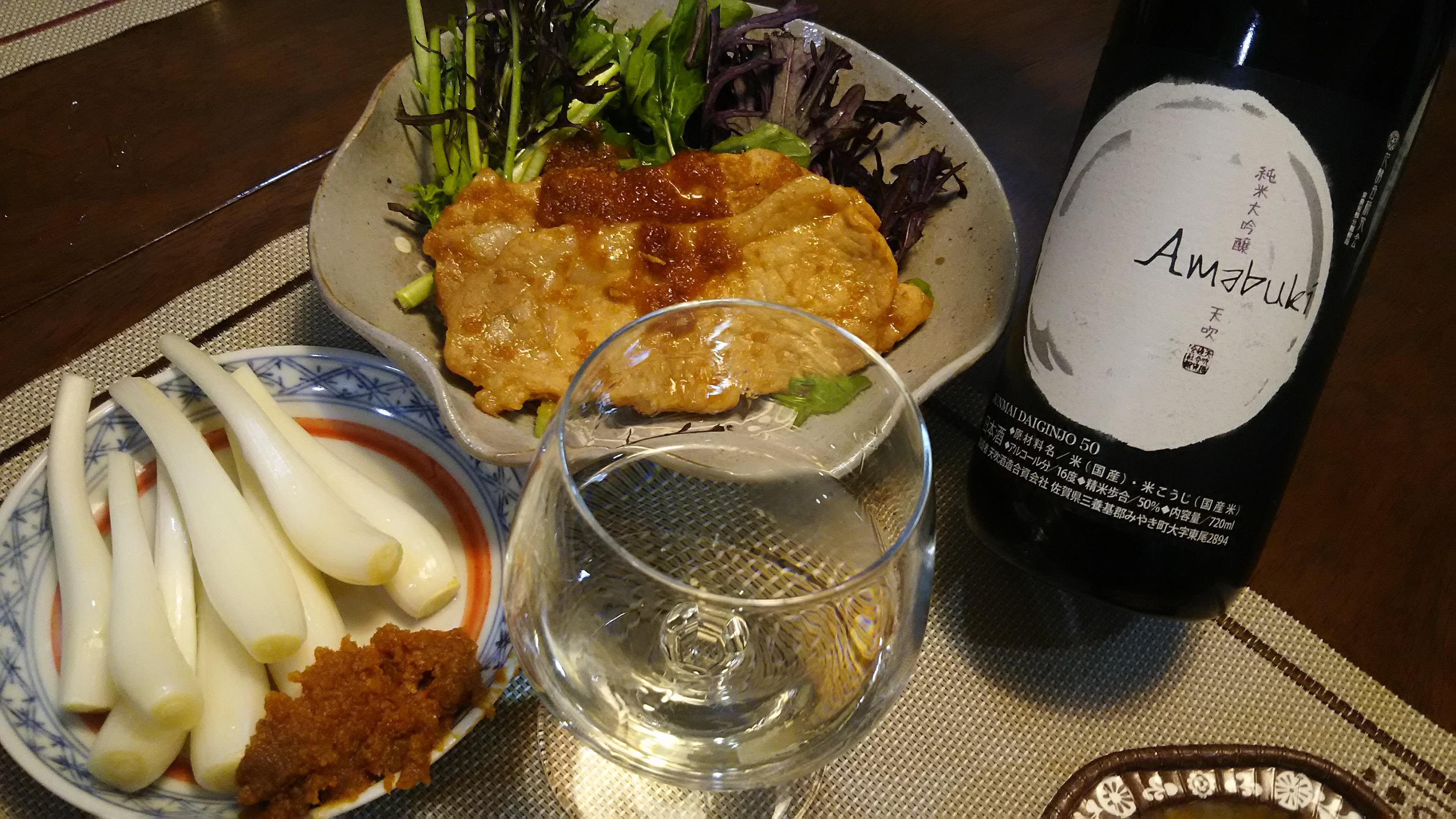 華やかというよりも、むしろ『清楚』と言った言葉が良く似合うお酒ではないでしょうか!後口の甘みや酸味にも、嫌みがなく、始めは軽やかな印象を受けますが、時間の経過と共に増していくコクと旨味に、ついついグラスに手が伸びてしまいます(笑)どんな料理が合うのか試してみたくて、今回は『豚の生姜焼き』に『エシャロット&味噌』そして、『ラザニア』を用意しました。