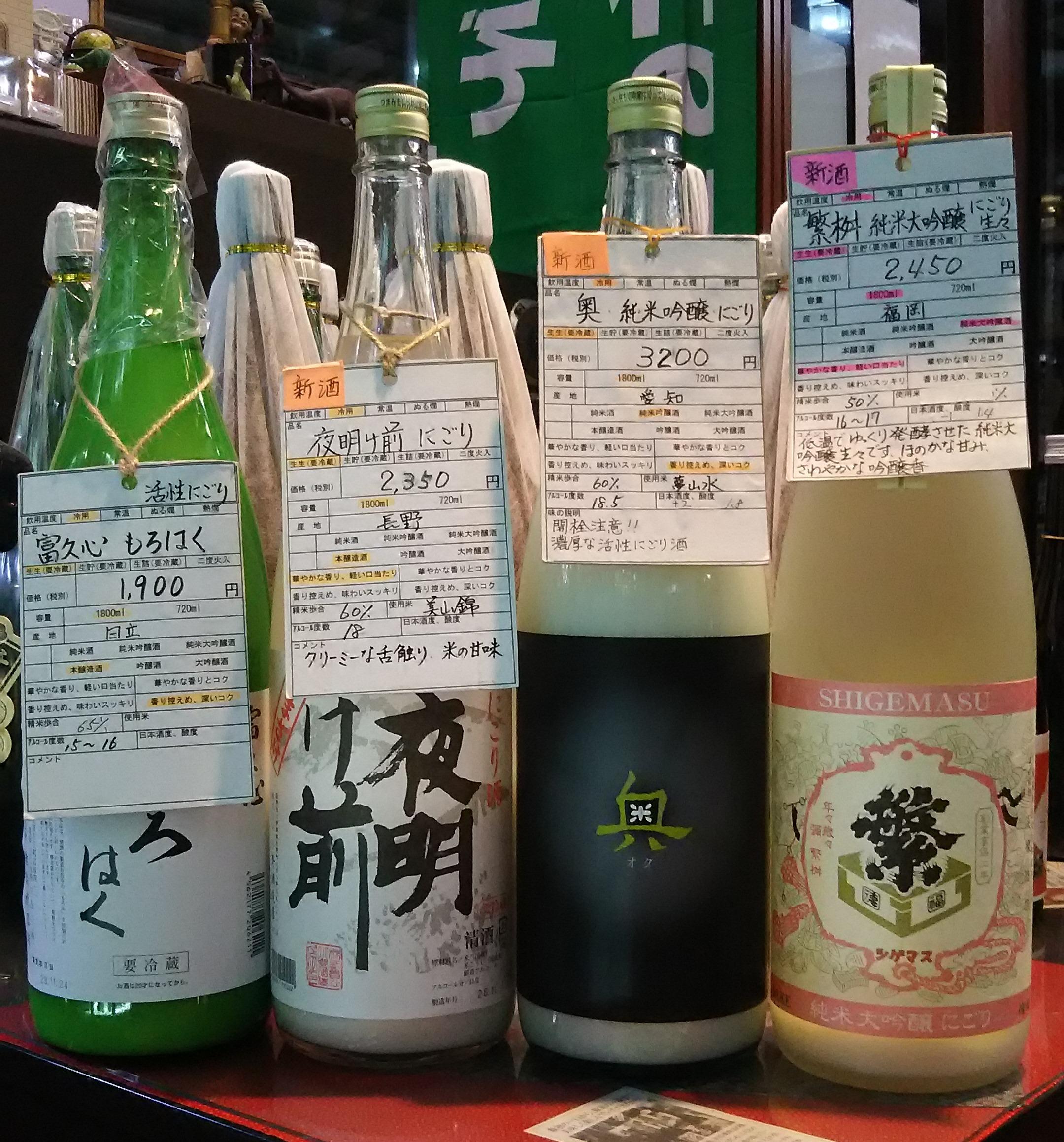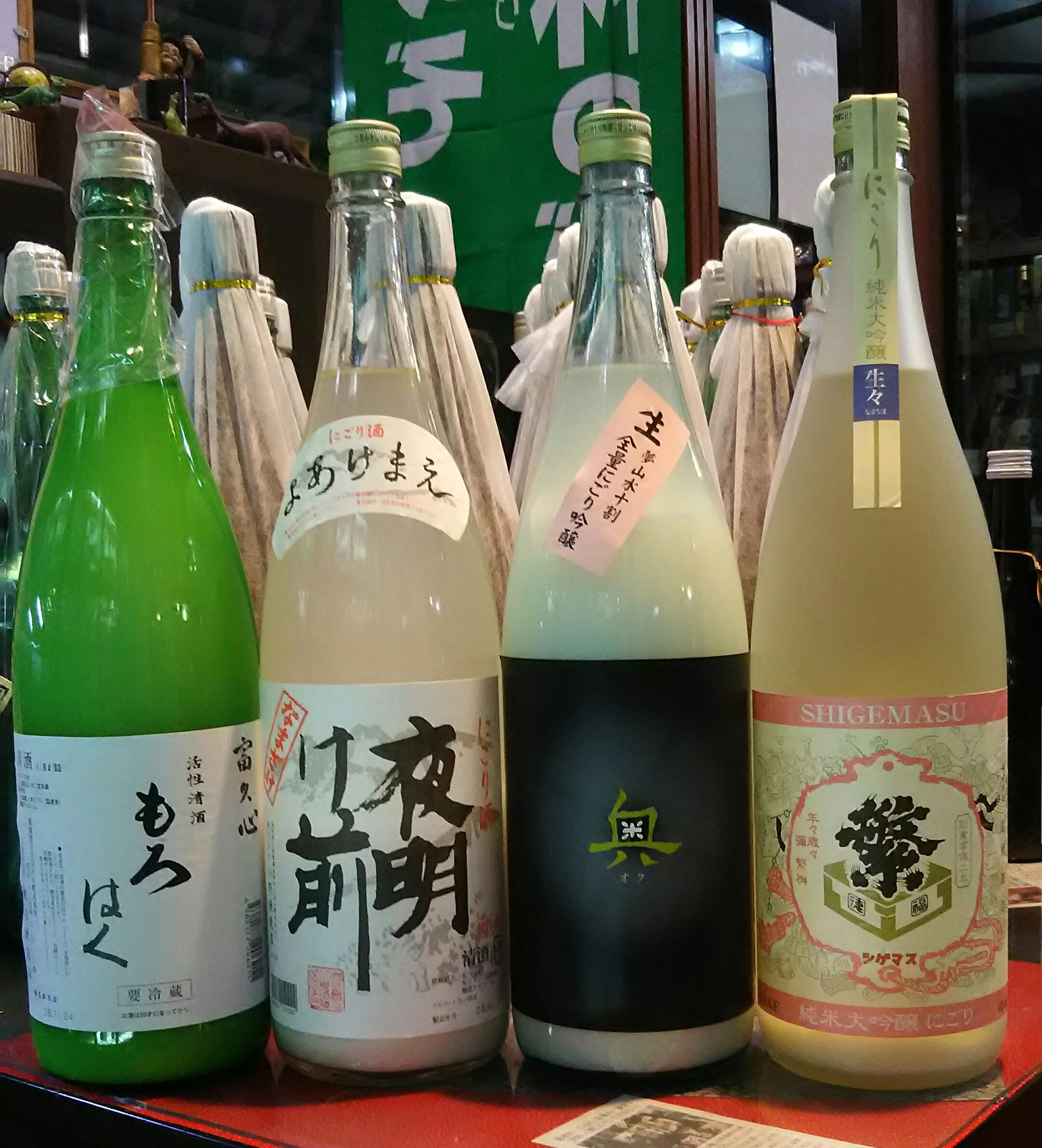 私の店にも、現在4種類のタイプの違うにごり酒があります。味わいの違いは勿論の事、飲み頃の時期や楽しみ方もまちまちなので、もし、にごり酒を飲んでみたいけど、何を選んだらいいのか分からない時には、お気軽にご相談ください!楽しいにごり酒ライフをご紹介いたします(笑)