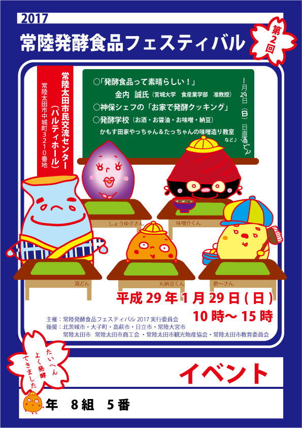 その『発酵食品』の良さを、今一度見直そうと言うイベントが、県北6市(常陸大宮市、日立市、高萩市、大子町、北茨城市、常陸太田市)の後援で、今週末の日曜日『1月29日(日)午前10時~午後3時』に茨城県常陸太田市の市民交流センターパルティホールで開催されます。その土地で発酵食品を造っている造り手たちが一堂に会して様々な催しが行われます。当店とお取引させて頂いている常陸太田の酒蔵『岡部酒造』さんもその参加されている一員で、先日イベントのポスターを持って来てくれました。