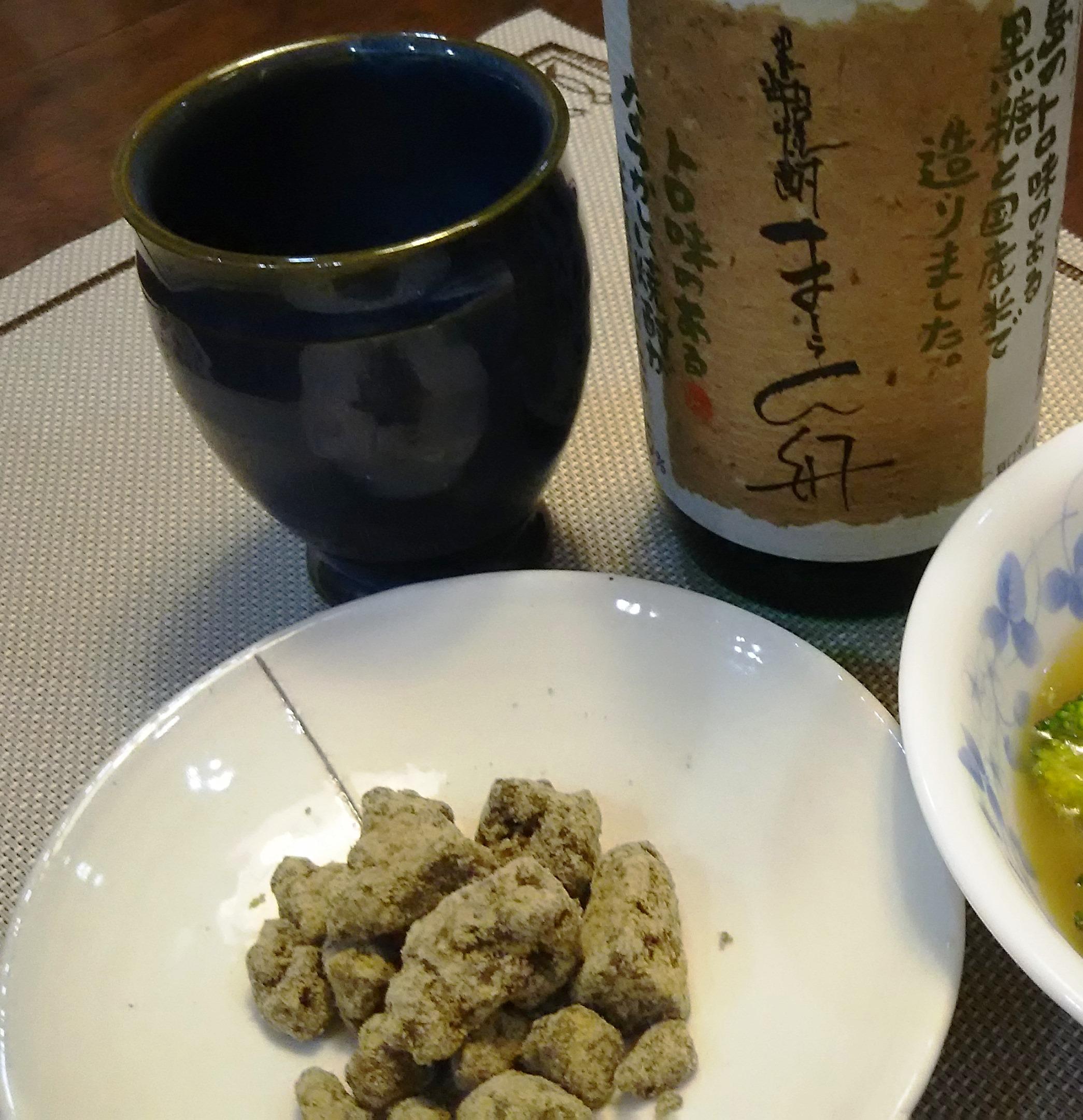 そして、何と、この生黒糖は『まーらん舟』の原料にもなっているんです!口に含むとトロリと溶けて、まるで生チョコを食べた時のような驚きです。黒糖焼酎の甘い香りと、生黒糖のとろけるような甘みとが口の中で相まって、最高のハーモニーを奏でてくれます。今宵も、ついつい杯が進んでしまい、飲み過ぎてしまいましたが、お湯割りでいただいたせいか、酔いざめも良かったです。『黒糖&黒糖焼酎』最高のパートナーです!