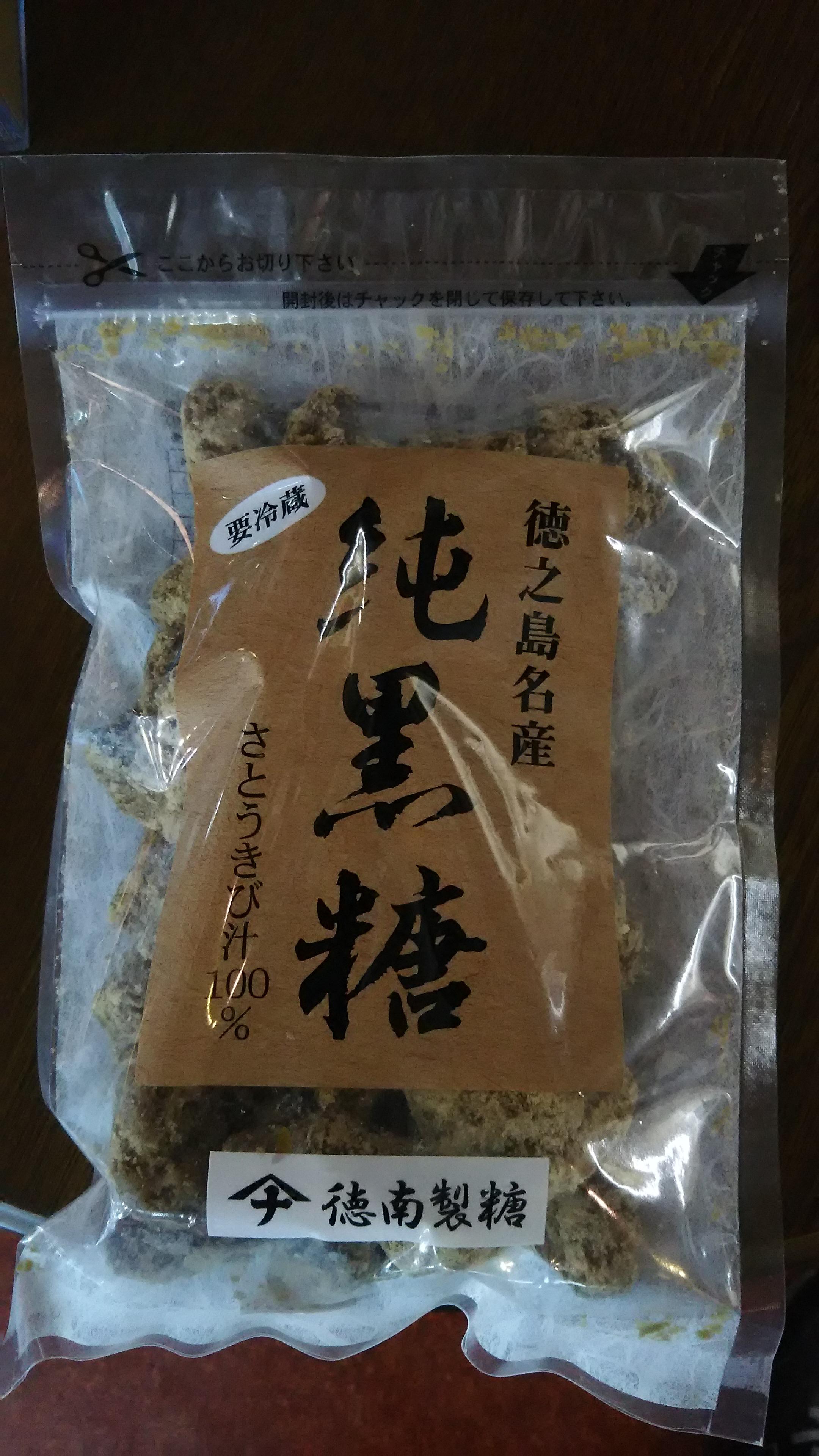 そして、奄美大島のお隣の徳之島で一年に一度だけ作られる徳南製糖さんの『本生黒糖』を一緒に頂きます。袋に記載されている原材料は『サトウキビ』のみ、保存料なども使っていないために管理は『要冷蔵』で、賞味期限は一年間という商品です。それゆえ、巷では幻の黒糖とも噂されているほどで、私の店でもまとめて仕入れています。