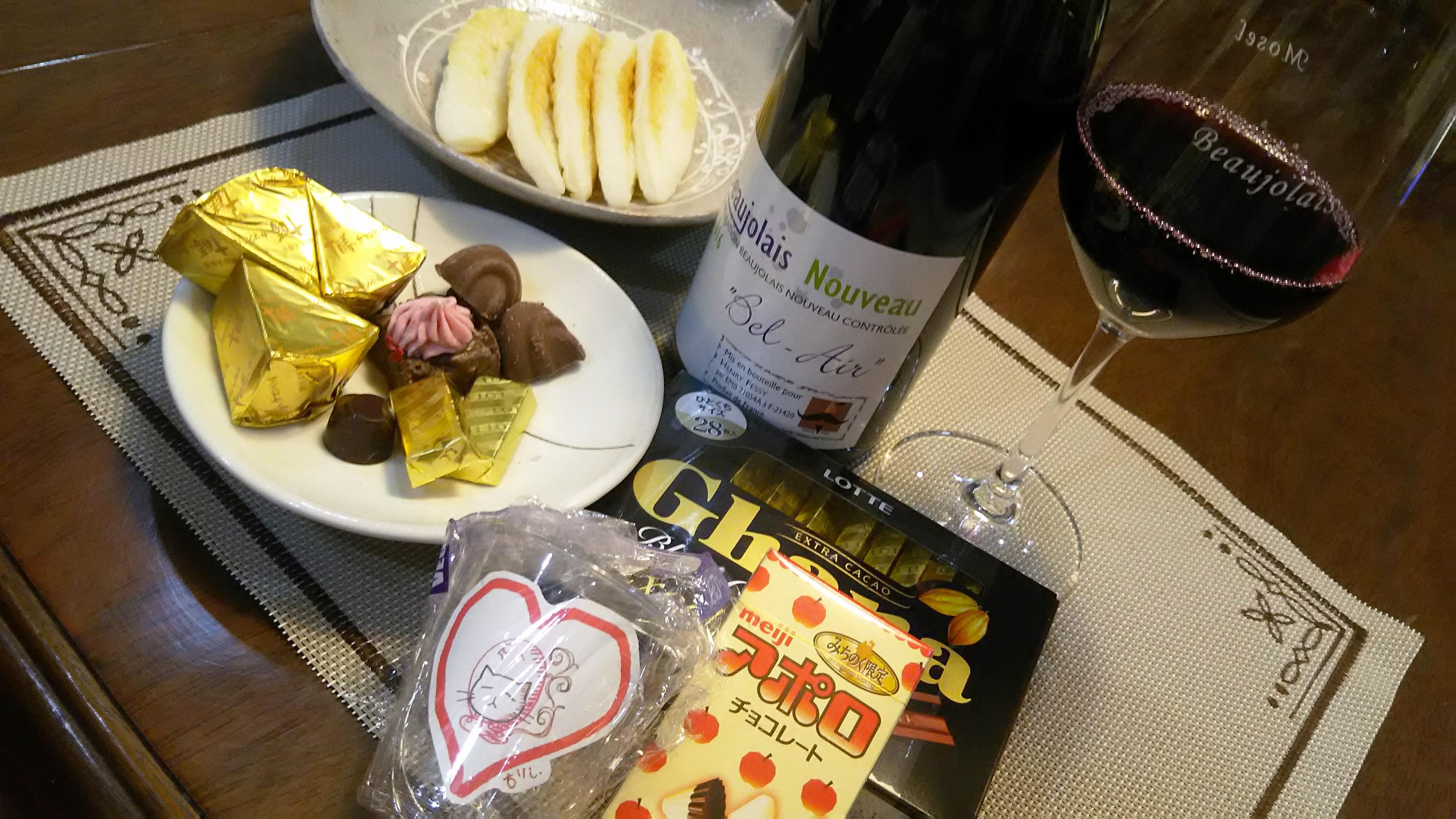 そこで、今回は、チョコレートに合わせる酒と言えばワイン!という位に鉄板の組み合わせで、晩酌を楽しみたいと思います。今回頂いたチョコレートは、手作りの物から地域限定品や有名銘柄等で、味わいも、甘いものから苦みの強い物、酸味の利いたものや、さらりとしたものなど、バラエティに富んだ品ぞろえとなっていますので、この機会に様々な飲み合わせを楽しみたいと思います(笑)