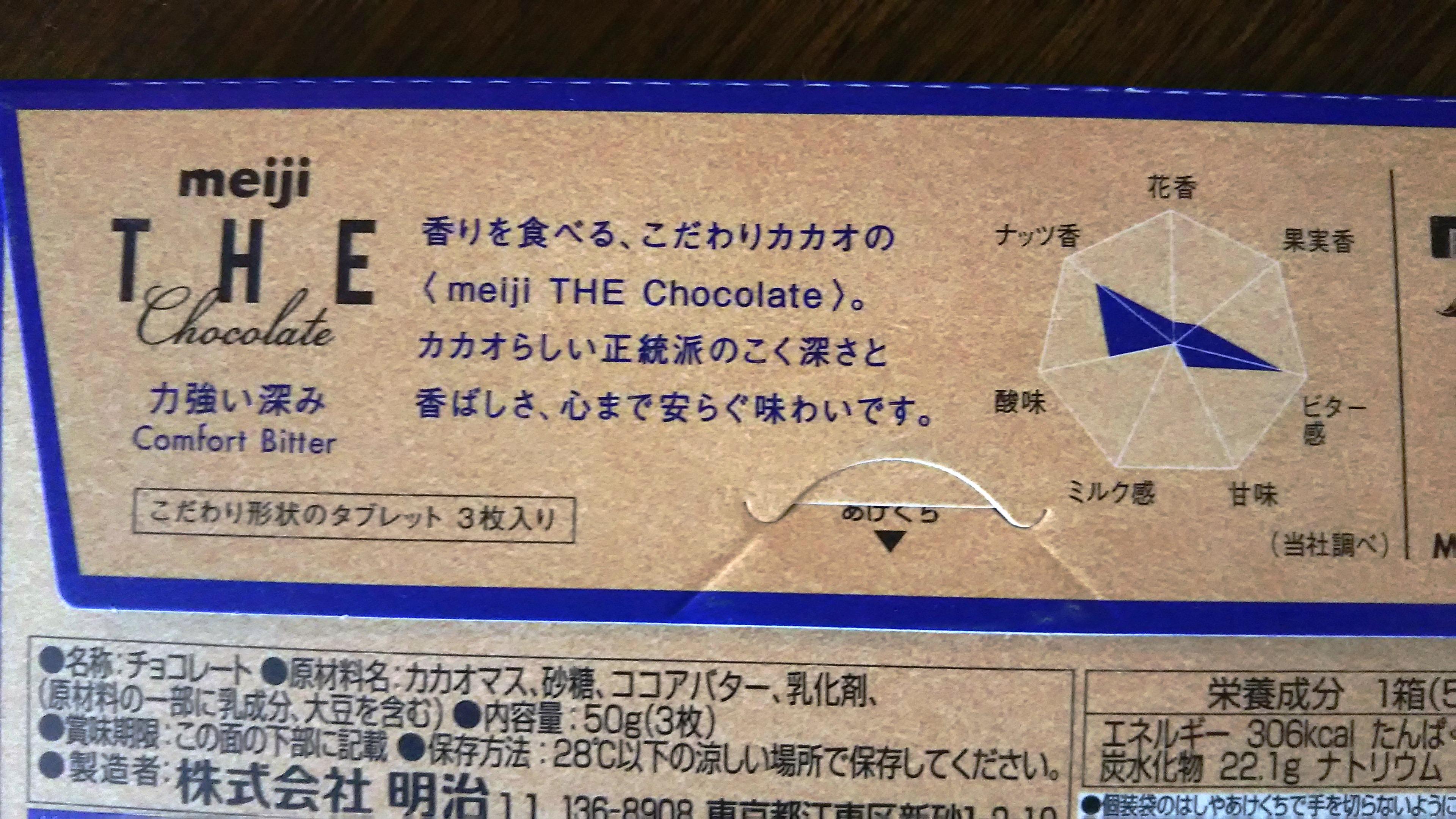 『力強い深み』『濃厚な深みと旨味』『華やかな果実味』これって、実は、そのチョコレートのパッケージに記載されているうたい文句なんです!チョコレート業界の巨人が開発した『明治ザ・チョコレート』に書かれている言葉です。なんとなく、ワインや日本酒、ウイスキー等、お酒の味わいの説明に似ていると思いませんか・・・。私も、これと似たような表現を使ったりするので、妙な親近感を覚えてしまいました(笑)