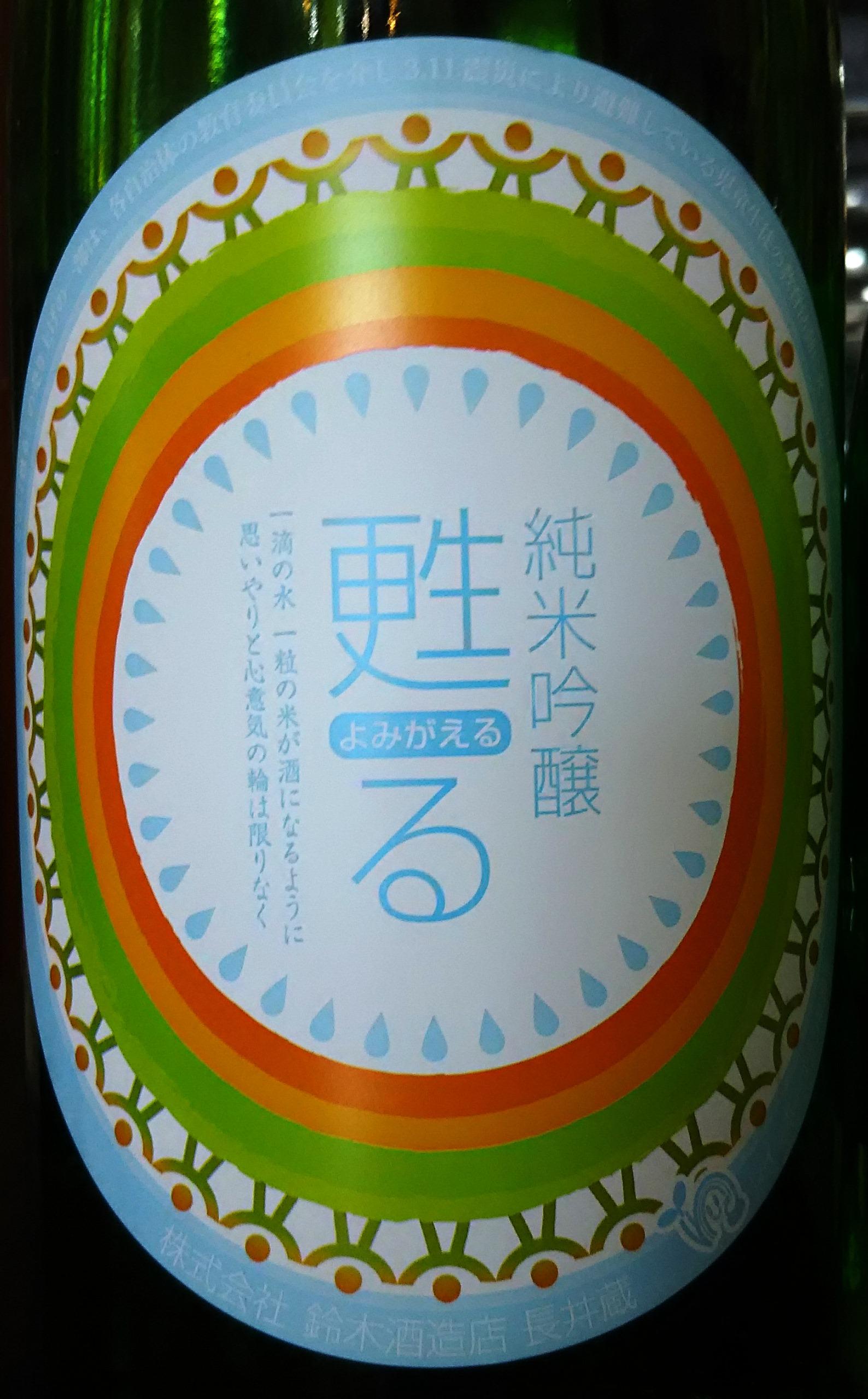 『純米吟醸・甦る』1.8L 2800円 720ml 1400円(税別)