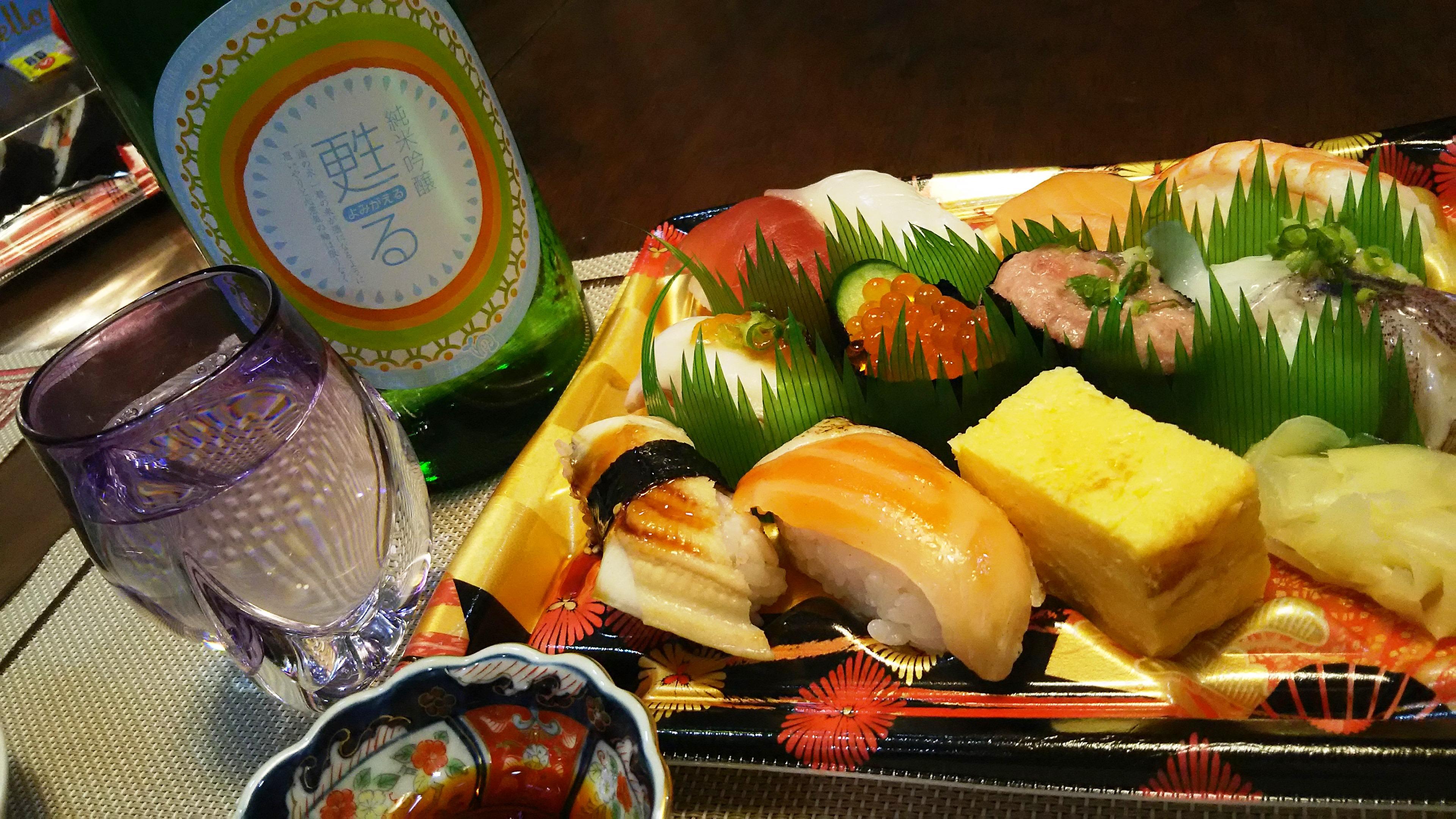 鈴木酒造さんの造る酒は、かつては海の男たちがこよなく愛する『海の男酒』と呼ばれており、旬の味覚の中でも魚介類との相性が抜群なんです。この日も、惣菜の握り鮨を肴に一杯頂きましたが、ワサビしょうゆに付けた刺身を食べながら飲むと、お酒の甘みが一気に広がって芳醇なコクが醸しだされてきます。