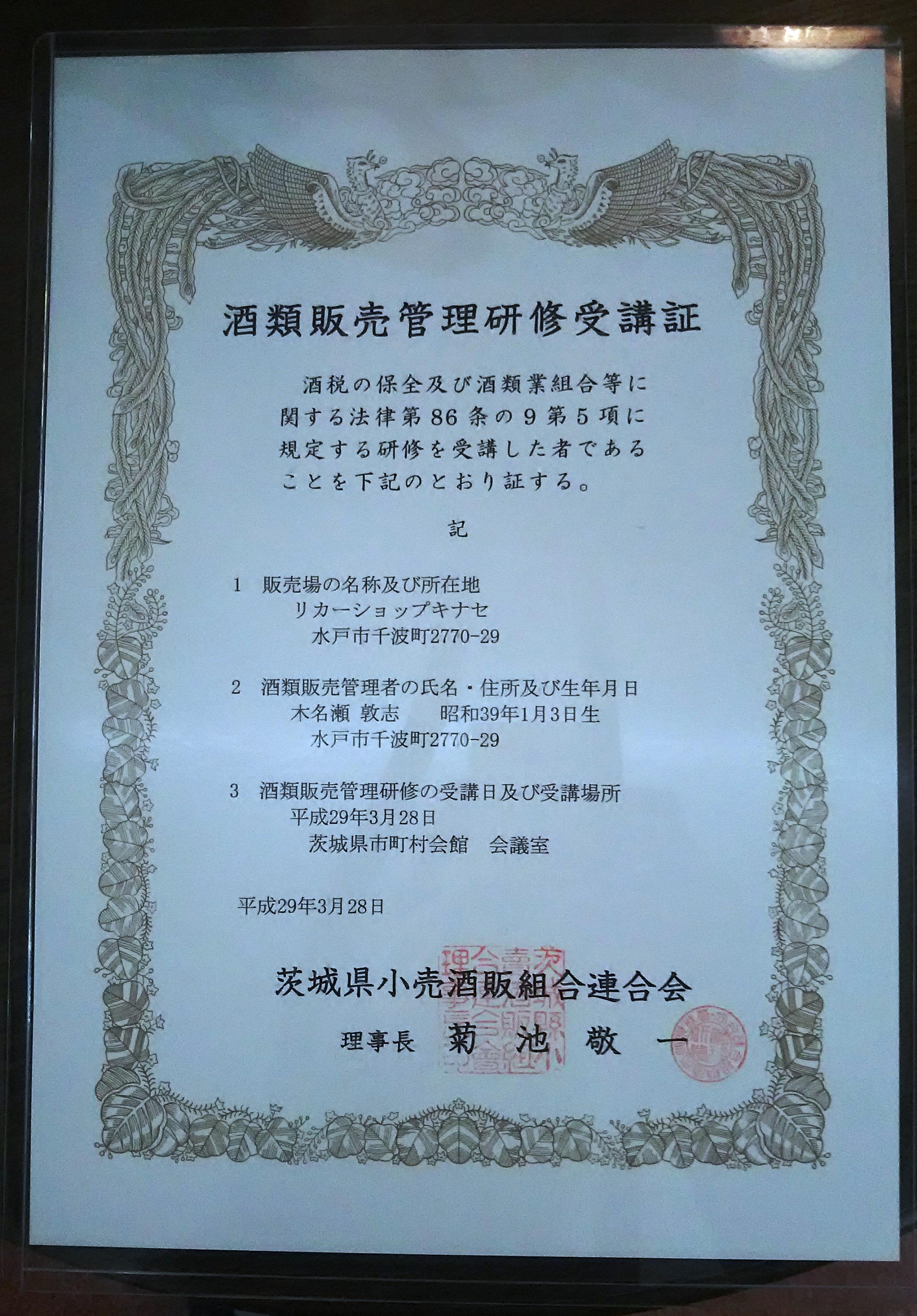 酒屋をやるために必ず取得しないといけないのは、第一に『酒類販売免許』ですが、もう一つ大切なのが『酒類販売管理者』の資格取得です。酒類を扱う販売所には、必ず、この『酒類販売管理者』の認定を受けた者が居ないといけないのです。もし、居ない場合は、6月からの法改正によって、最悪の場合、酒類販売免許の取り消し処分となってしまいます!また、車の運転免許証と同じく、3年に一度は研修を受けないといけないのです。