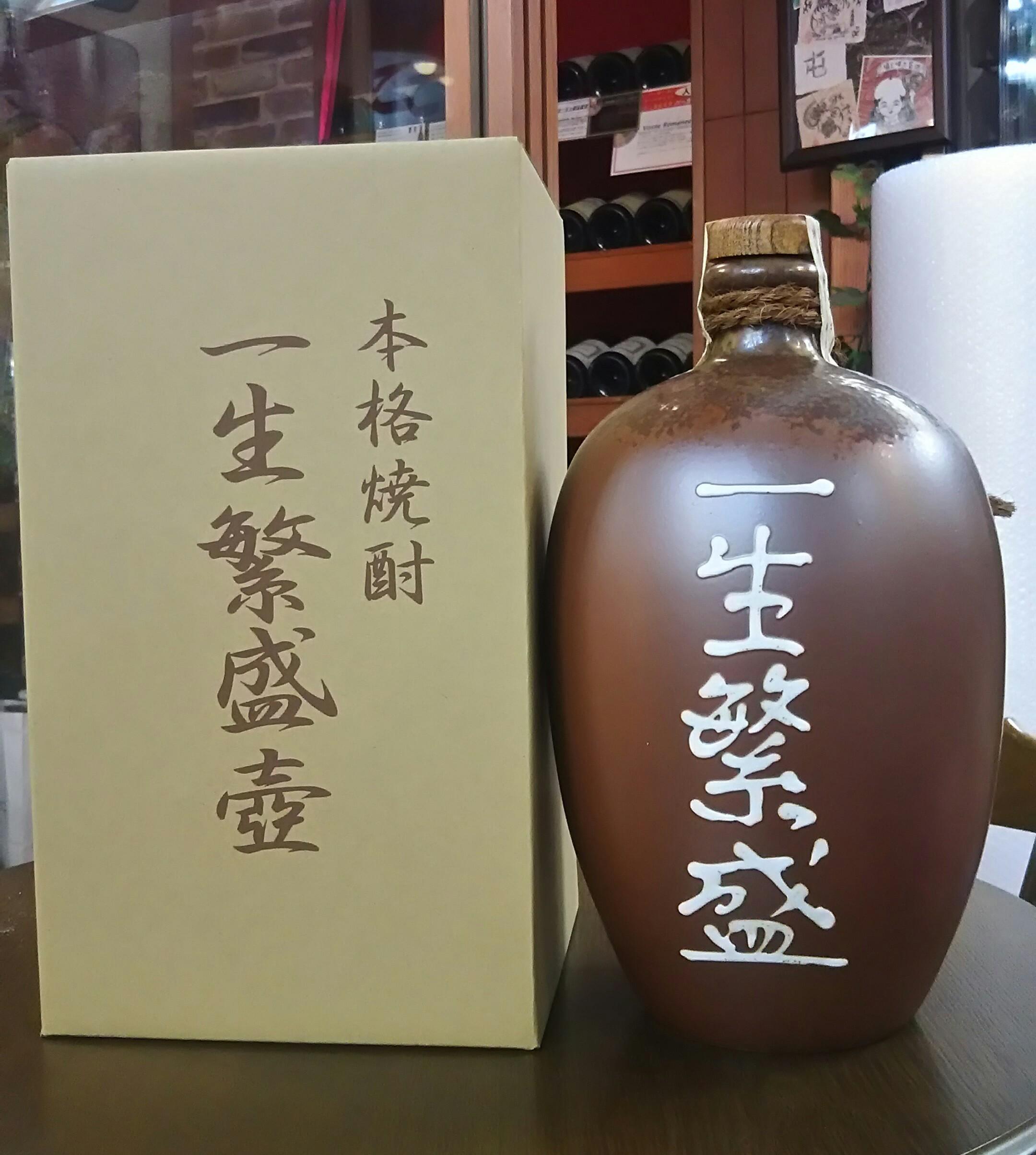 感の良い方なら、もうお気づきのことと思いますが、このお酒の容量が2.7L、つまり一升(1.8ℓ)と半升(0.9ℓ)という事から、『一升半升』となり、語呂合わせで『一生繁盛』となり、この陶製の甕壺には『一升繁盛』の文字が焼印されているんです。ちょっと、オヤジギャグの様にも思えますが、これが、なかなか洒落が効いている~と、喜んでくれる方が多いんですよ!