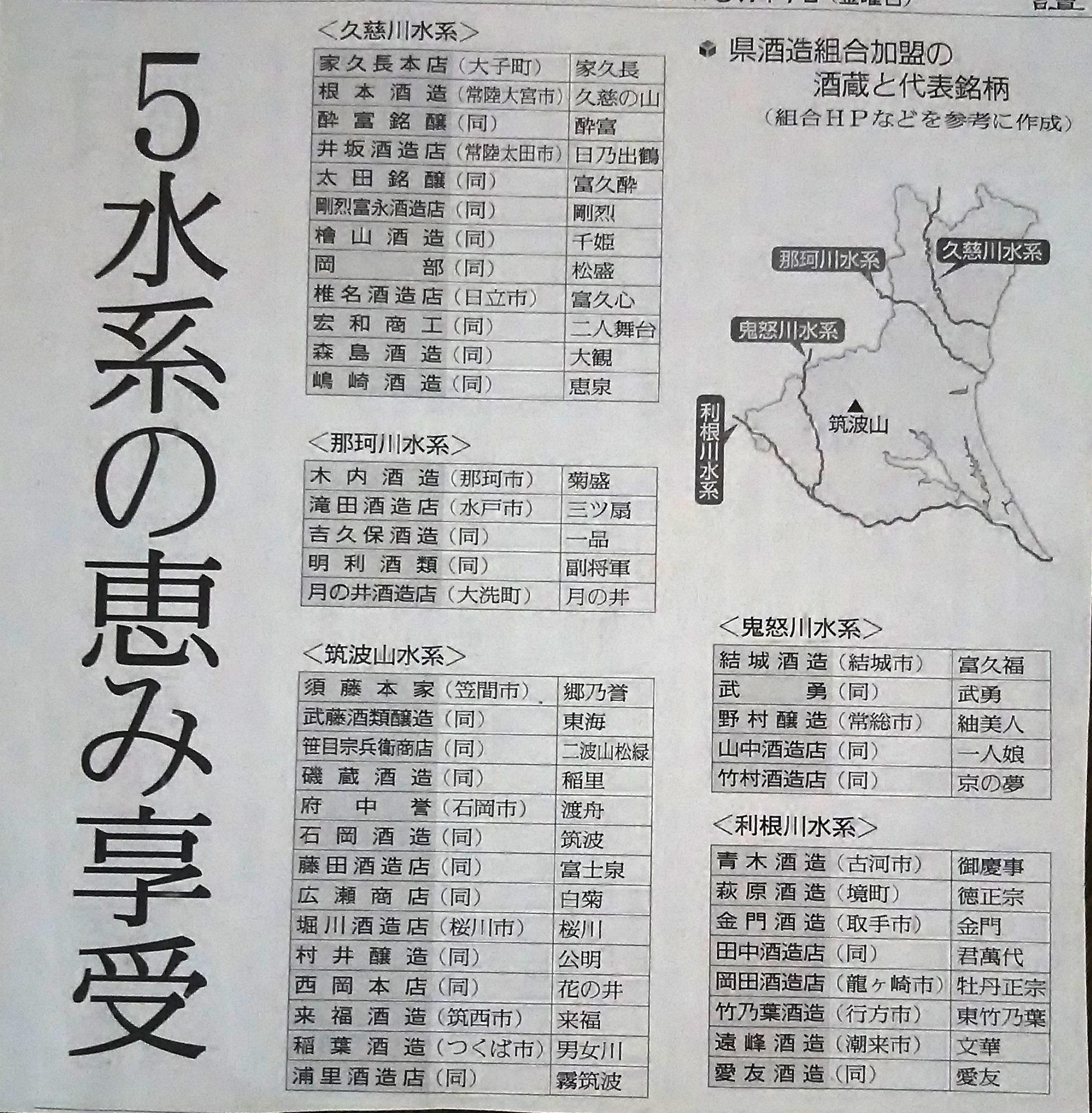 茨城県内には『五つの水系』があり、それぞれの水系によって水の味わいや性格が変わってきますので、造られるお酒の味わいにも関係してきます。今回の『新酒をきく会』は、