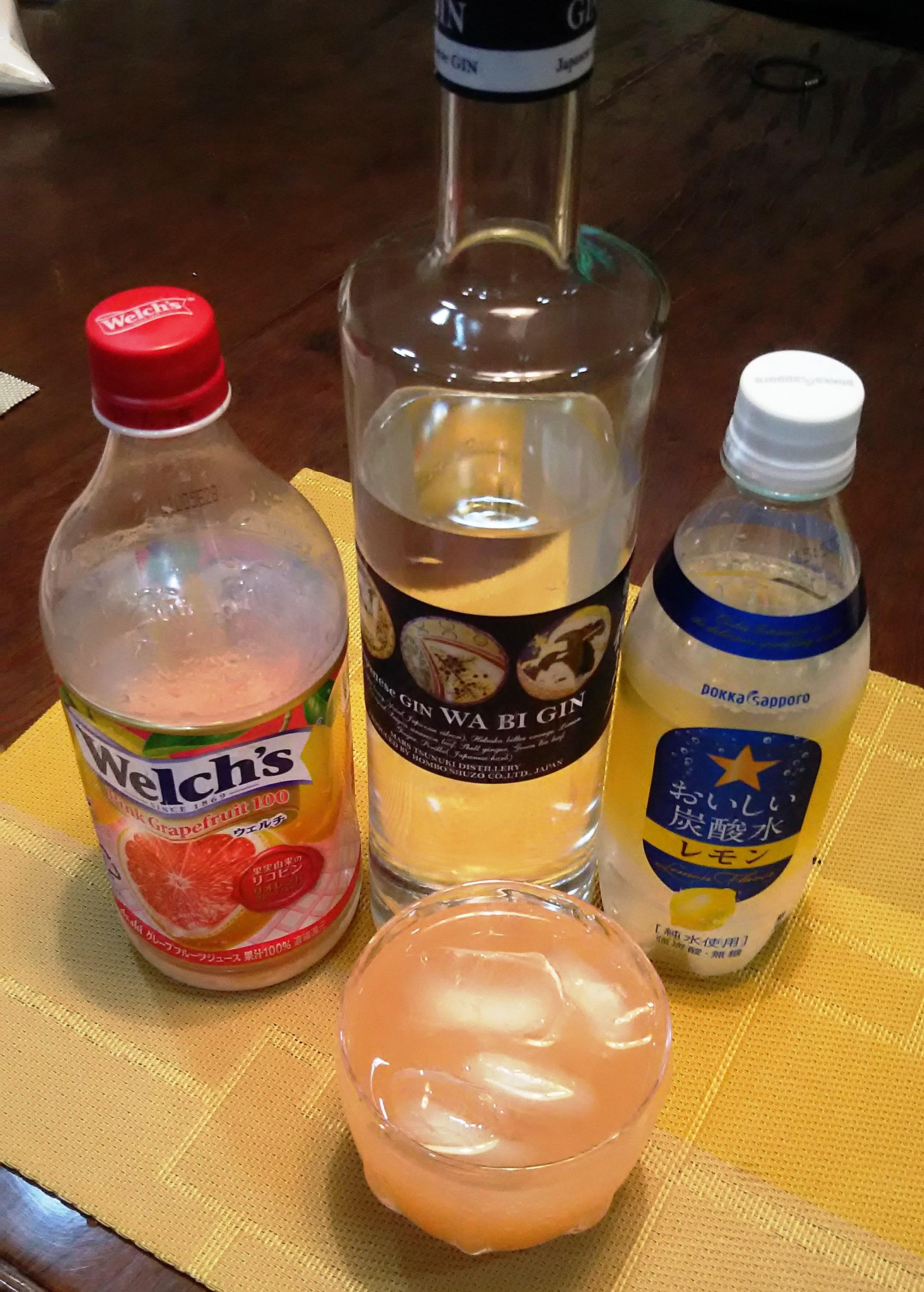 先日のブログでご紹介したワインカクテル『ロゼパン』に使ったグレープフルーツ・ジュースが余ったので、国産ジンの『和美人(わびじん)』を使った、その名も『ワビジン・パンプルムース』略して『ワジパン』を作ってみました!これは私が勝手にネーミングしました(笑)