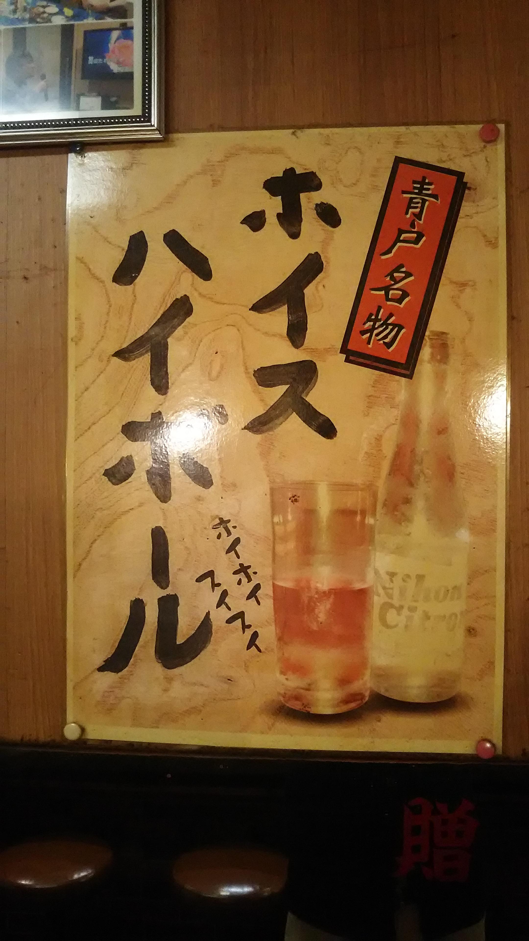 友人のW氏に、地元ならではの名店を案内して頂けるという事で、いつも以上に気合を入れて街に繰り出しました(笑)夕方5時というのに、どこのお店も沢山のお客さんで賑わっており、サスガ呑兵衛の聖地!と感心しました。そして、この町に来たのならば是非!『ホイス』を飲んでほしいと言うのです。『ホイス』??、初めて耳にする謎の飲み物に興味をひかれつつ、彼の案内のもと、隣町の『青砥』へと移動しました。