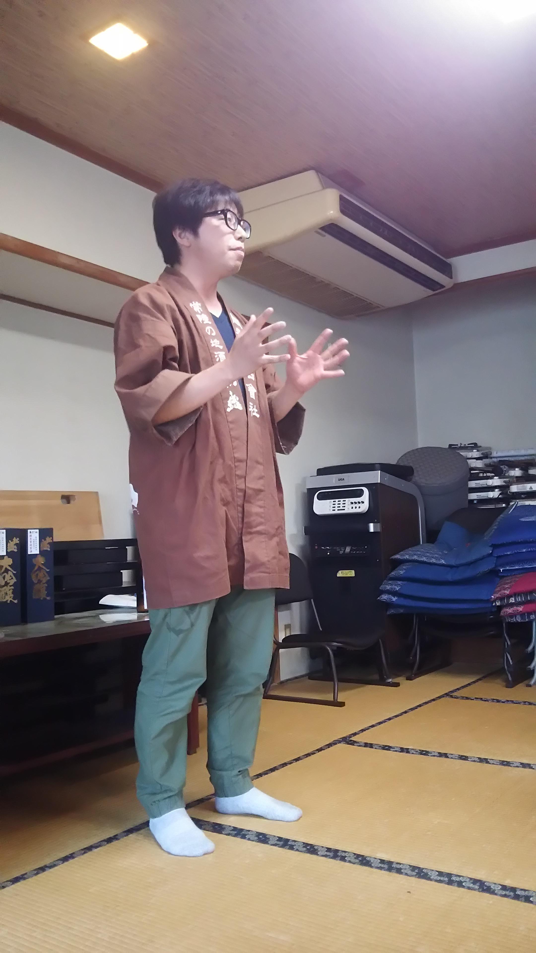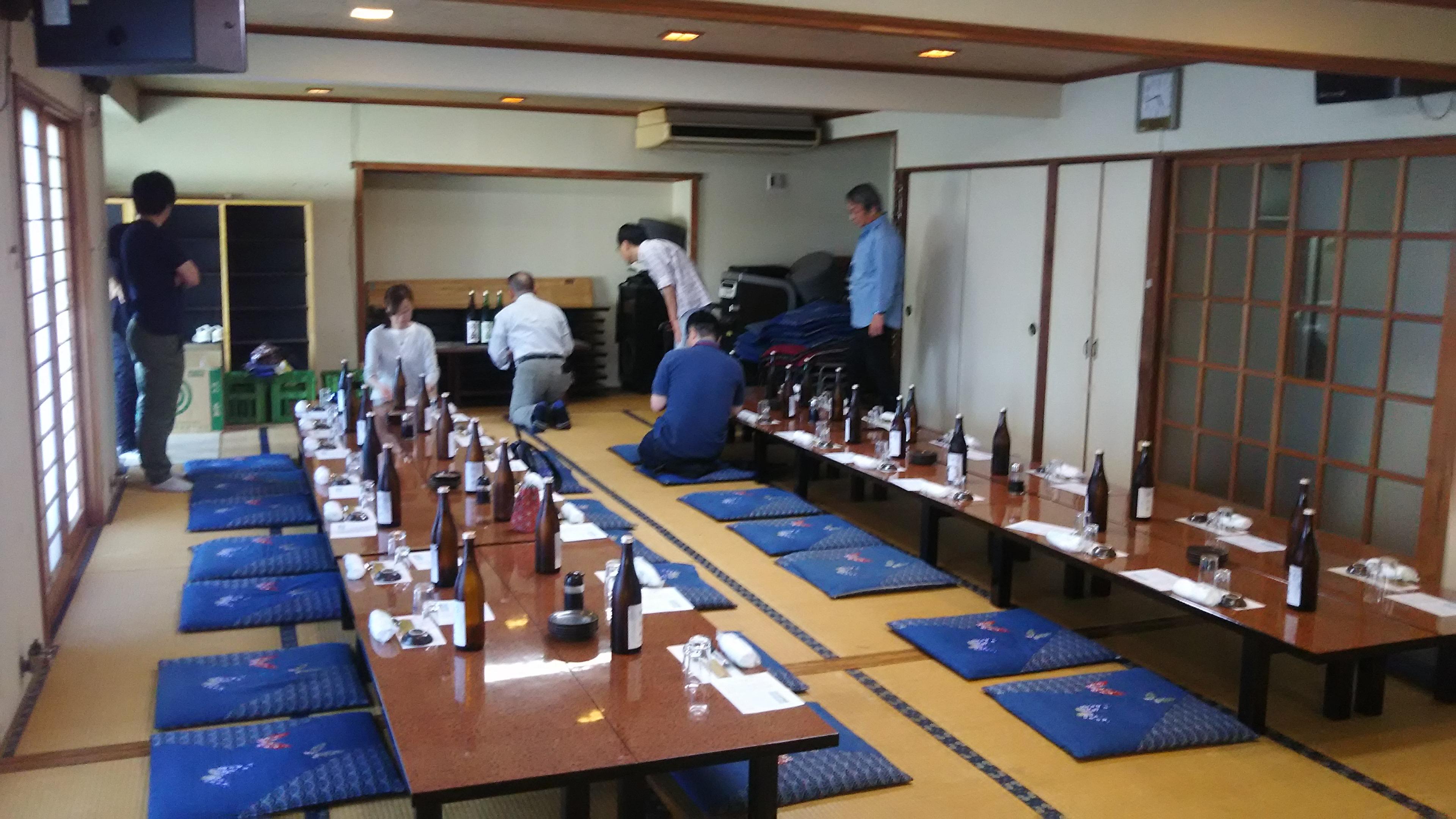 今回のテーマは、『金賞受賞の御祝』と『夏酒の新作発表会』の二本立て。6種類のお酒、一人当たり850mlの分量を準備し、心置きなく全種類を味わっていたけるようにしました。蔵元からは、6代目の岡部さんと蔵人の武田さんのお二人にご出席いただき、お酒造りの話は勿論の事、お酒にまつわる様々な話を聞かせて頂きました。