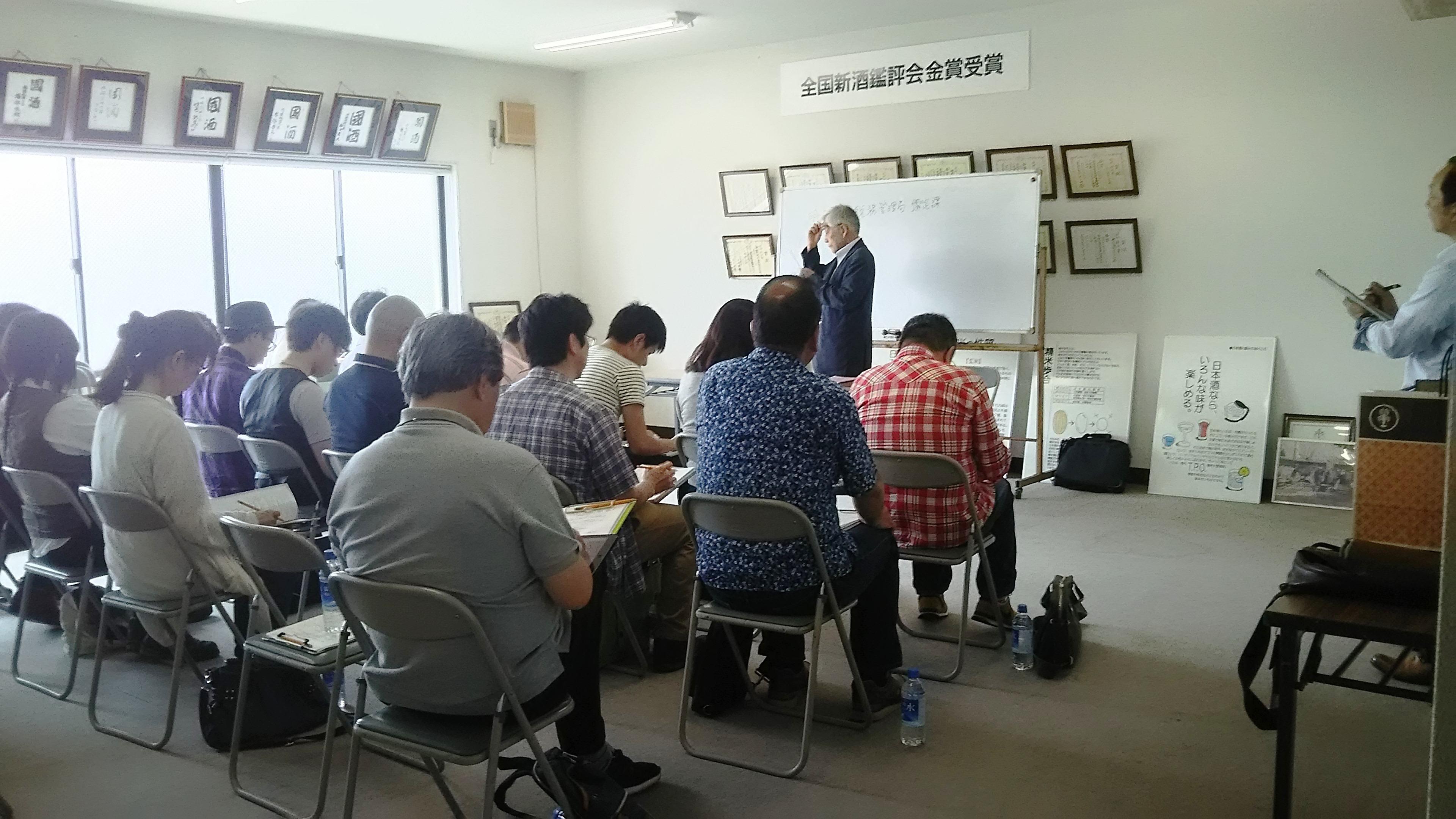 途中、酒類鑑定官の歴史やワインの醸造に関すること等を織り交ぜながら、酒造りの話に移ると、キモト造りや速醸(そくじょう)造りと言った、酒造りの専門用がバンバン飛出し、続いて発酵の話では酵母や酒米が与える影響など、より高度な話へと進み、まるで大学教授の授業を受けているみたいで、ノートに記録するだけで精一杯でした(笑)それでも、ところどころに笑いが起こるなど、緊張感のある中にも和やかな雰囲気を感じる講義となりました。